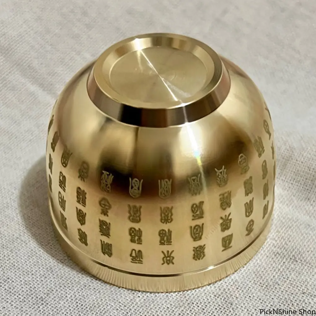 Feng Shui Hundred Blessings Bowl Made Of Solid Copper, Exquisite Mini Craft Ornament For Home And Office Decoration, Symbolizes Good Fortune And Wealth With Fine Handmade Workmanship