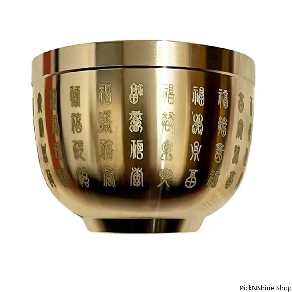 Specification: Color: gold. Material: Copper. Size: Approx 4.5cm/1.77inch,6CM/2.36inch. Note: There might be a bit color distortions due to different computer resolutions. There might be a slight errors due to different hand measurement. Package Includes: 1 Hundred Blessings Bowl