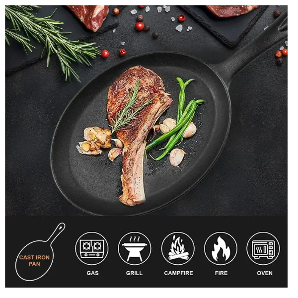 This skillet is perfect for home barbeque and kitchen service. Its design ensures safety and efficiency, making it a must-have for any kitchen. Enjoy cooking with confidence and style.