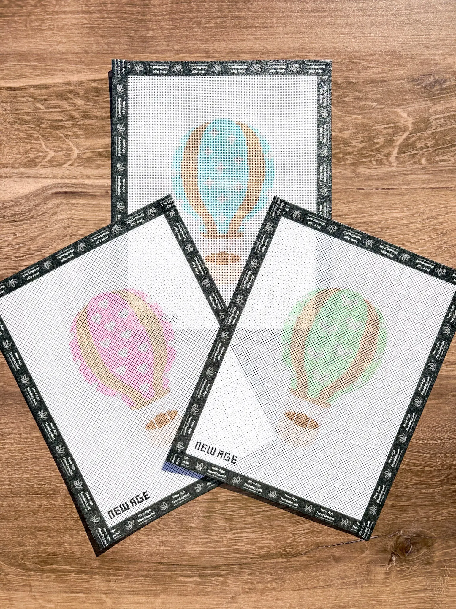 Float into something sweet with our Pink Hot Air Balloon Needlepoint Canvas, part of our whimsical Hot Air Balloon Trio Collection. This charming design features soft pink tones with heart details, making it perfect for baby gifts, nurseries, ornaments, or small framed finishes.