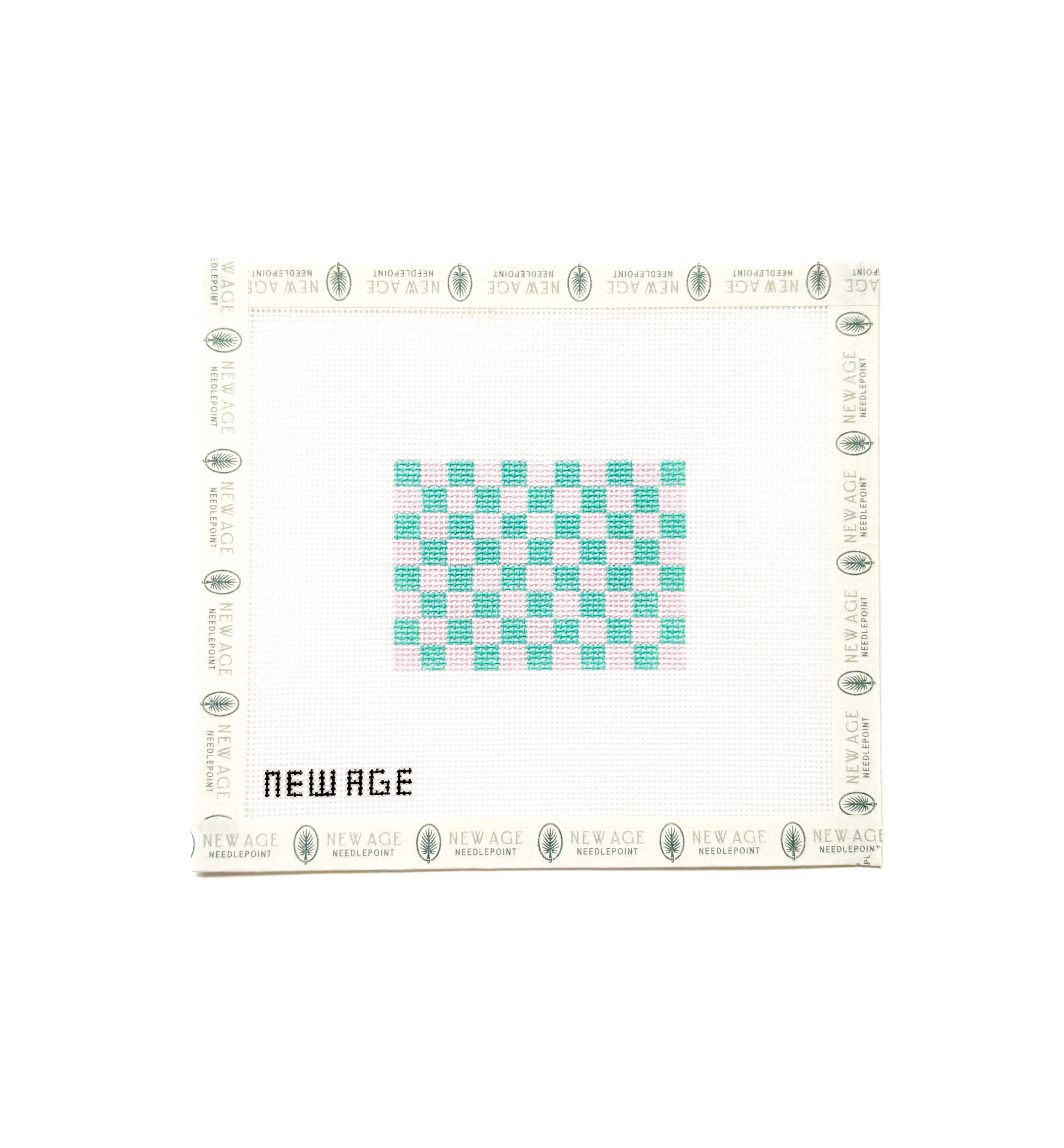 This hand-painted checkered needlepoint canvas is perfectly sized for a self-finishing luggage tag, measuring 3 x 2 inches. The classic pink and green gingham pattern makes it a timeless yet fun stitching project—great for travel accessories, gifts, or quick stitches.