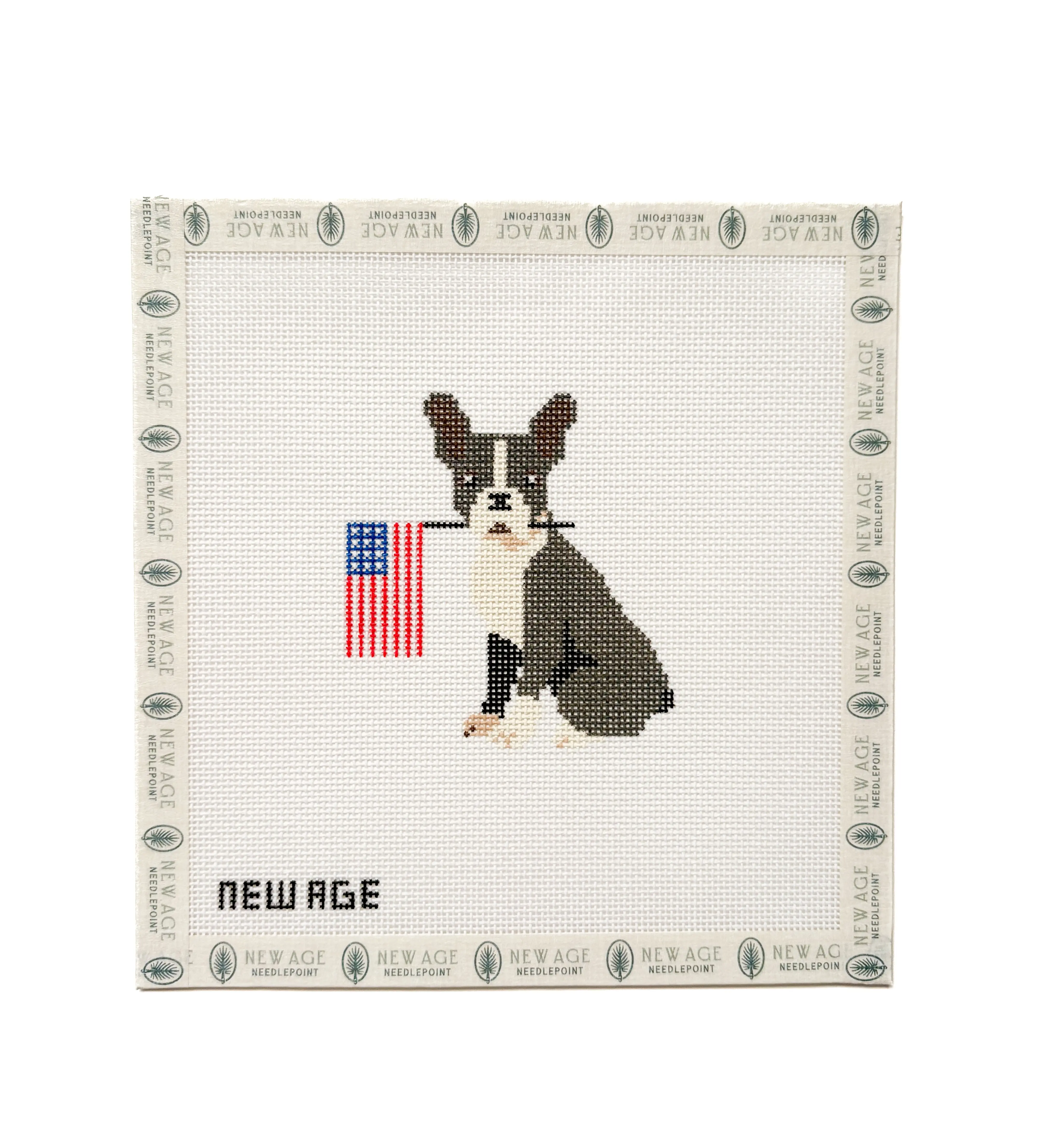 Stitch up some star-spangled cuteness with this hand-painted Boston Terrier needlepoint canvas! Featuring an adorable Boston Terrier proudly holding an American flag, this 8x8 inch design is perfect for patriotic projects, dog lovers, and summer stitching.