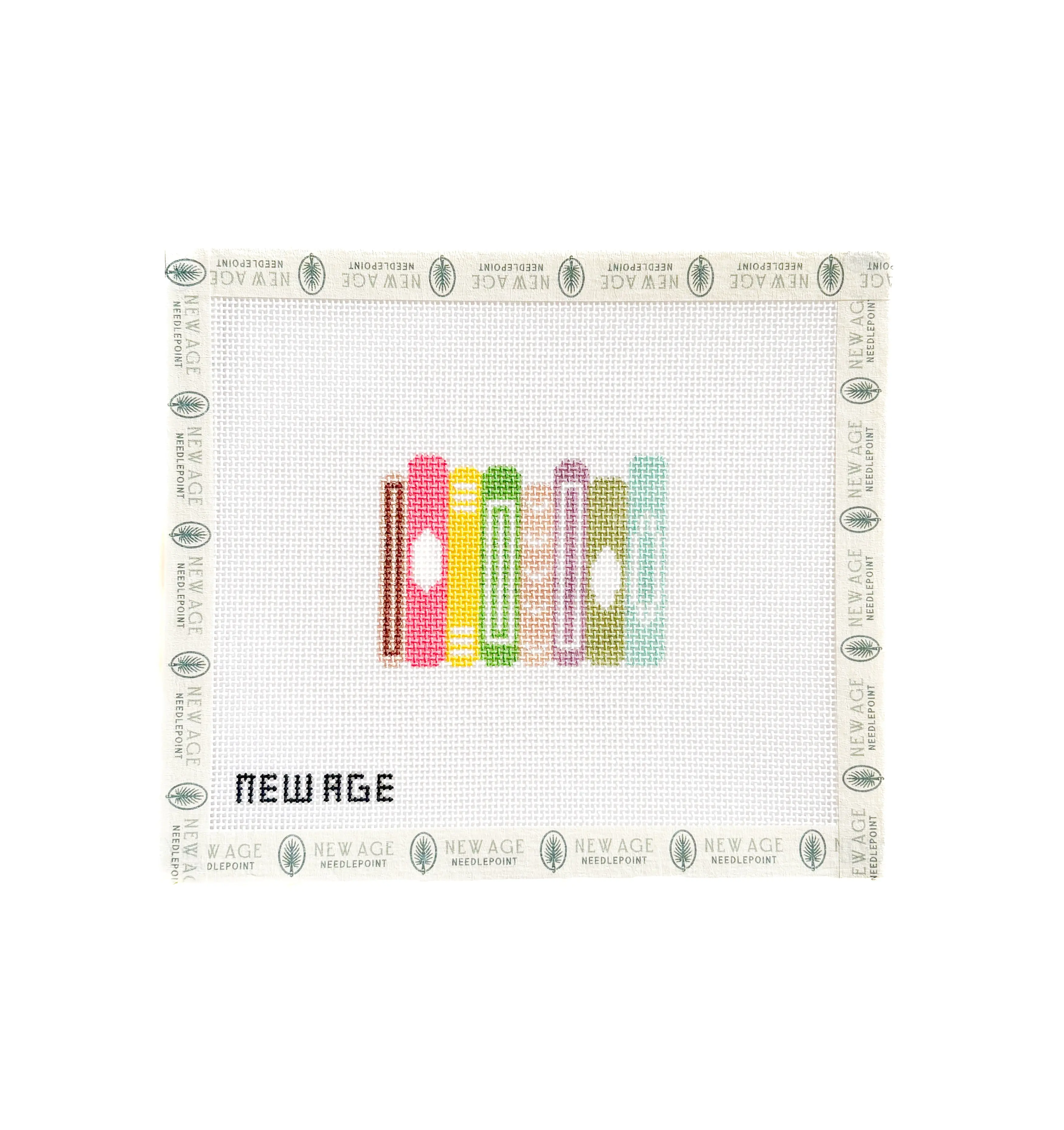 This hand-painted stacked books needlepoint canvas is designed to fit a self-finishing luggage tag, with a finished design size of 3 x 2 inches. Featuring a colorful row of classic book spines, this canvas is perfect for readers, teachers, students, and anyone who loves literary-inspired needlepoint.