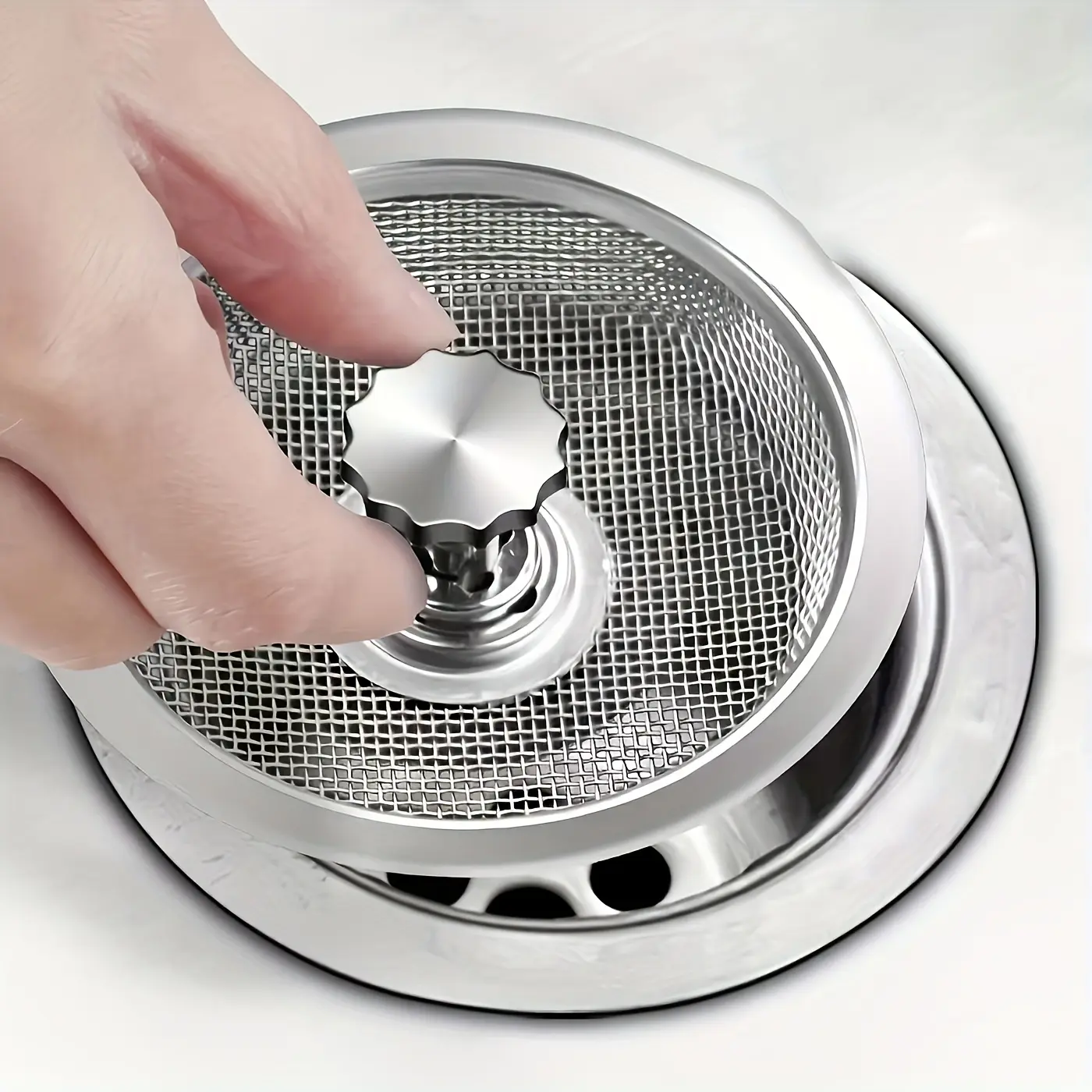 1 Stainless Steel Anti-Clogging Sink Drain Filter Mesh (3.2 Inches) - Central Knob for Easy Cleaning, Fine Grid Traps Debris, Universal Filter Accessory for Bathroom, Kitchen & Toilet Sinks - Standard Size