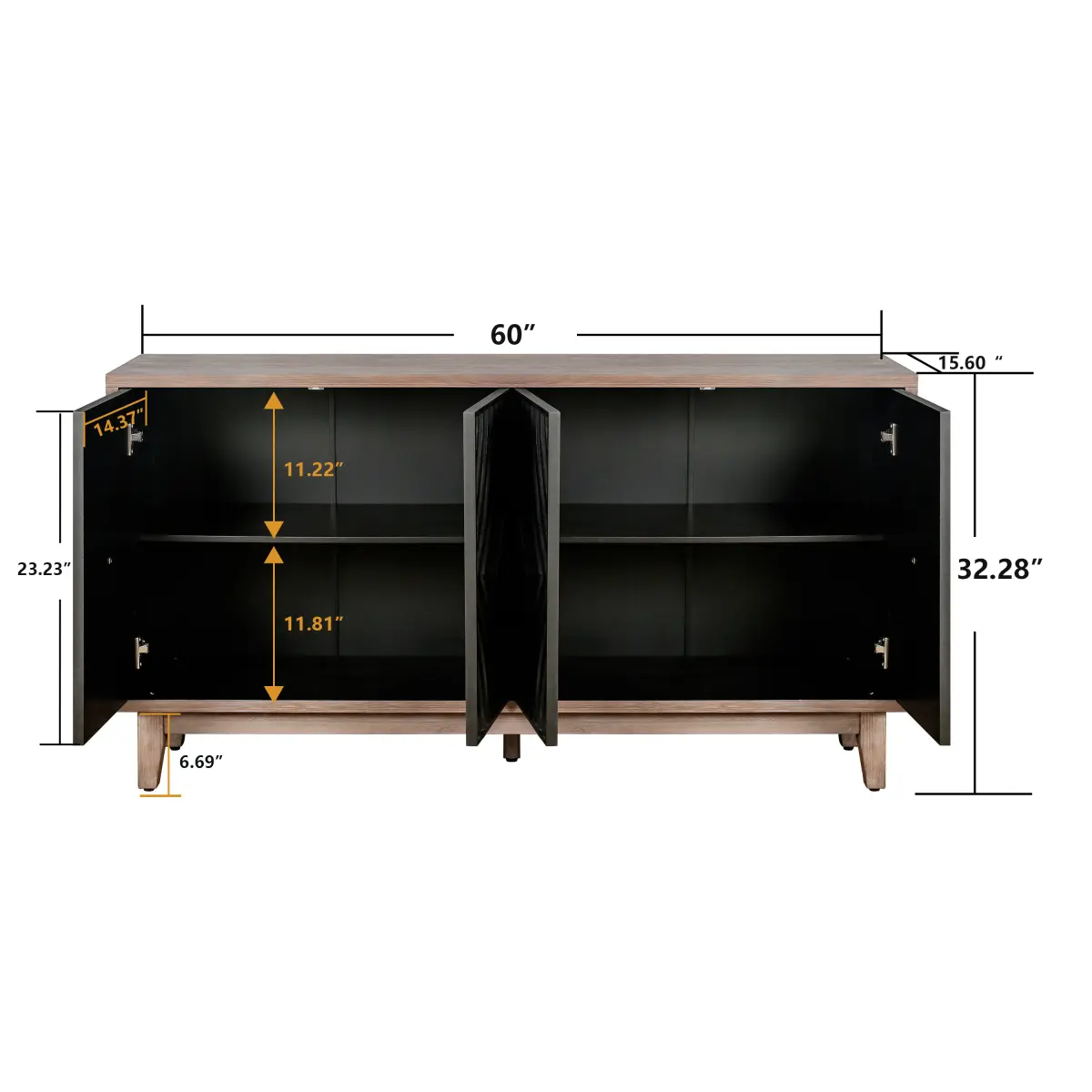 ·LARGE STORAGE CABINET - Dimension: 60"Wx15.6"Dx32.28"H. This buffet cabinet features 4 doors and 2 interior shelves, offering spacious storage space for all of your living items and meet your various storage needs.