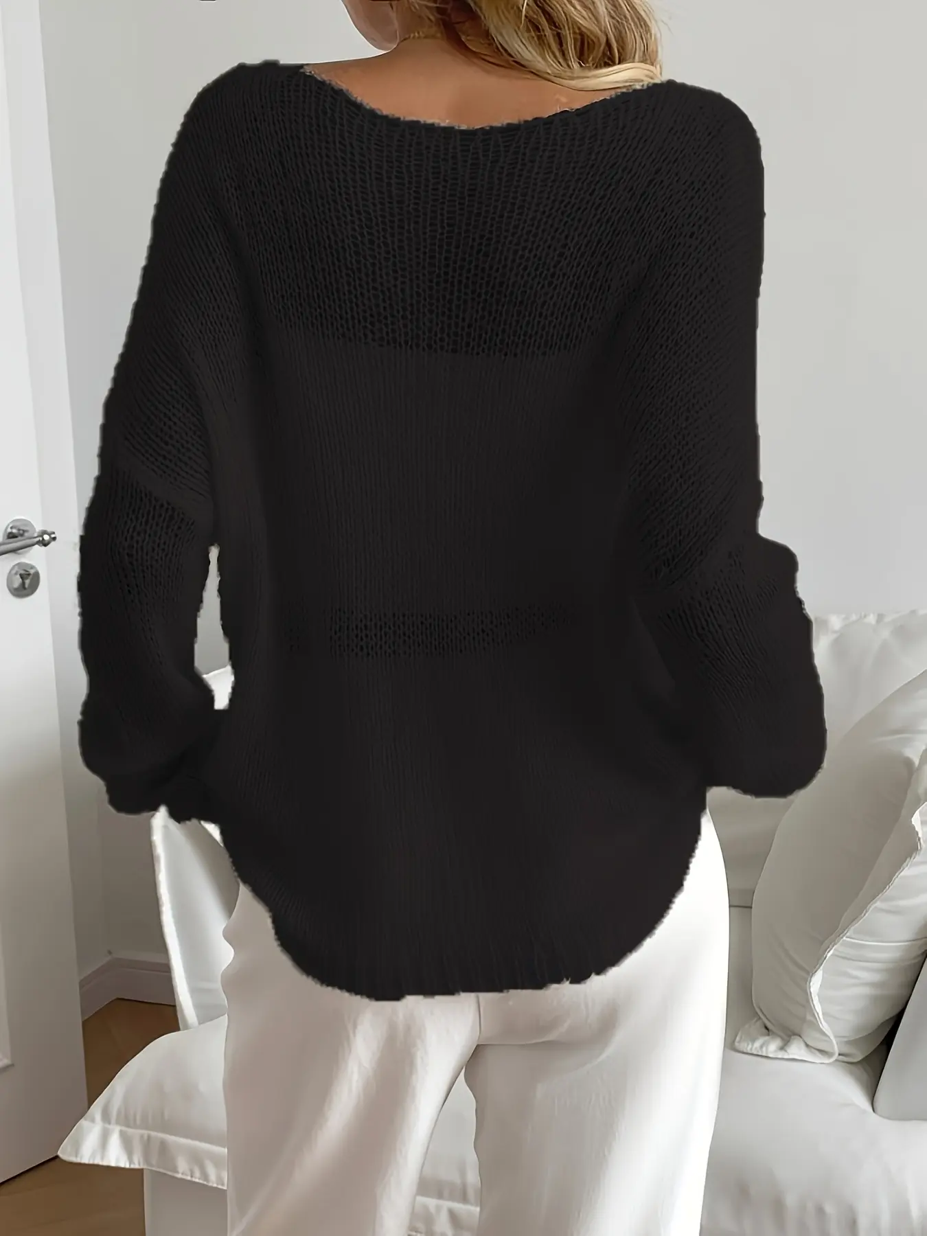 [Breathable Mesh Pullover] Women's Off-Shoulder Sweater - Breathable Mesh Panels & Relaxed Fit Long Sleeve Pullover for Spring/Summer, Elegant Semi-Sheer Loose Top with Medium Stretch, Chic Casual Wear, Seasonal Wardrobe, Stretchy Fabric, Summer Wardrobe
