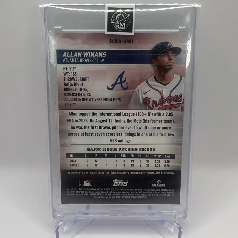 2024 Topps Stadium Club Allan Winans Autographed Card Certified Authentic Baseball Collectible