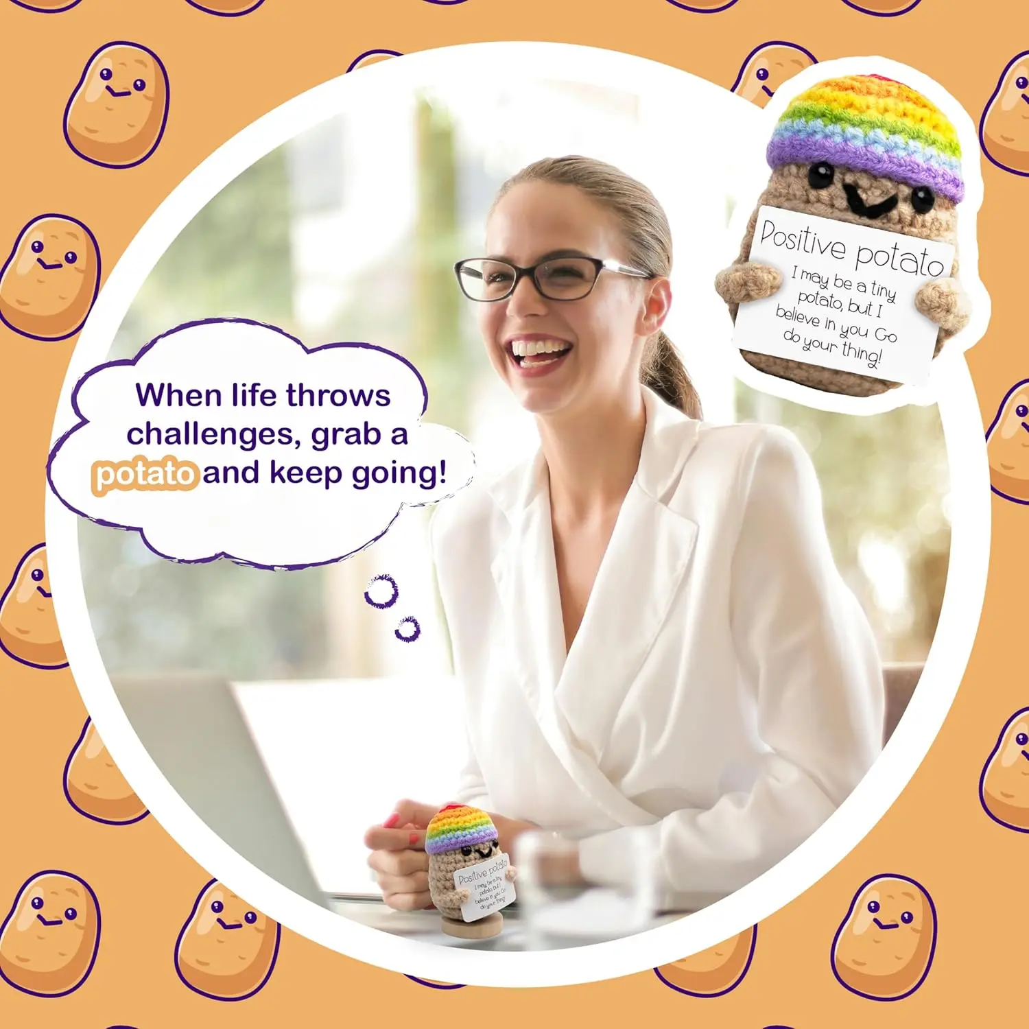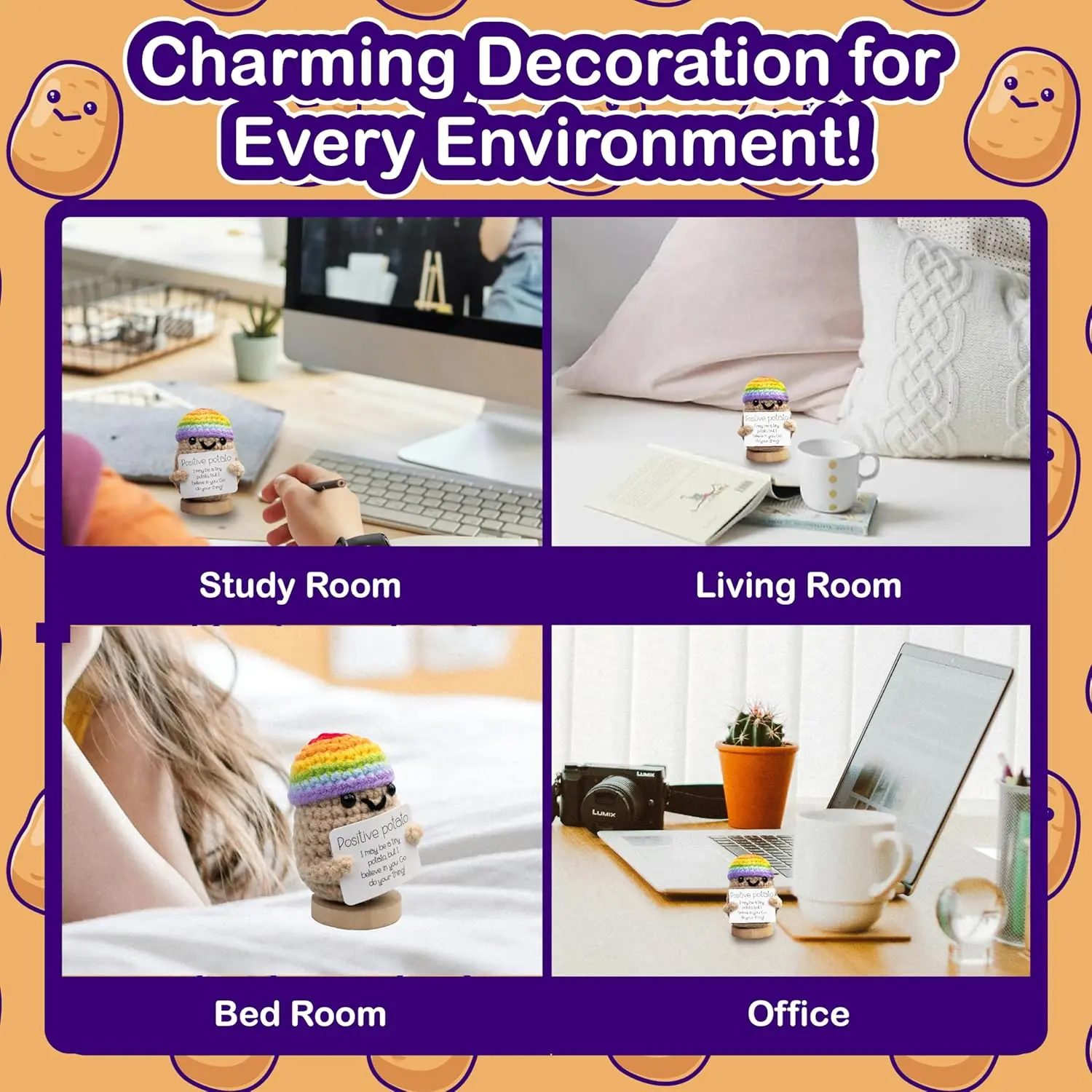 Adorable Marlo & Buzz crochet potato plush with stand! This funny emotional support toy offers comforting motivation for stress and anxiety relief, perfect as charming home decor. Soft, cute, and full of warm energy to cheer you up every day.