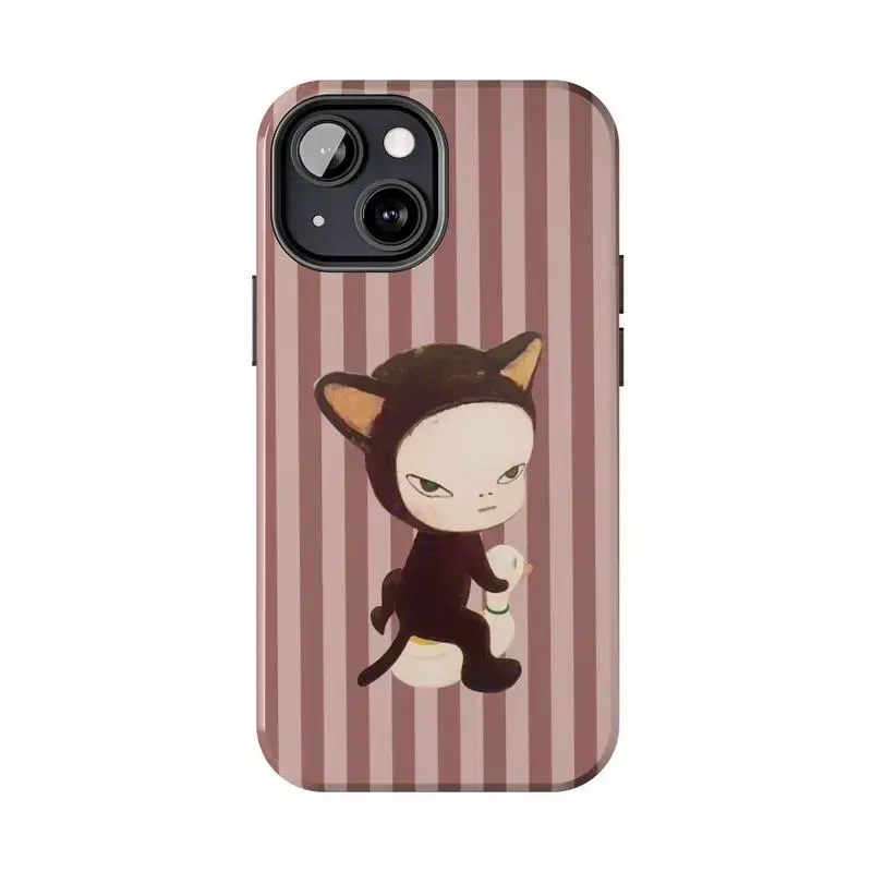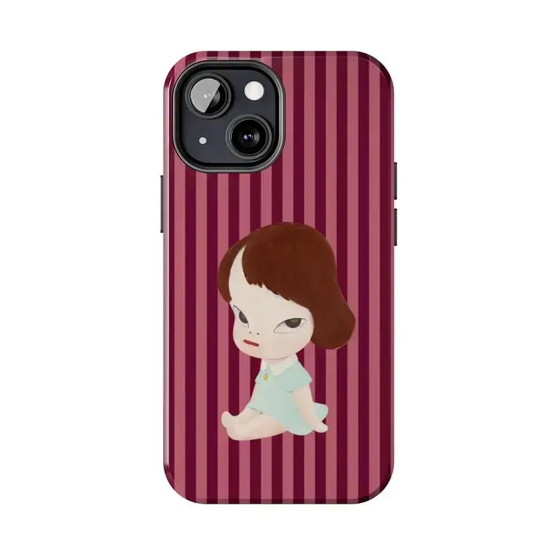 5. 8-Style YOSHITOMO NARA Striped Art Phone Case, Preppy and Cute Aesthetic Japan Cover for iPhone 17-11 Pro Max Plus