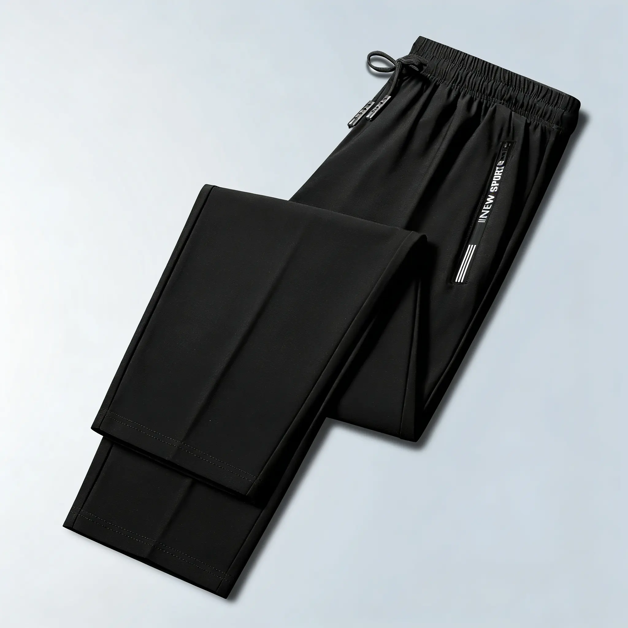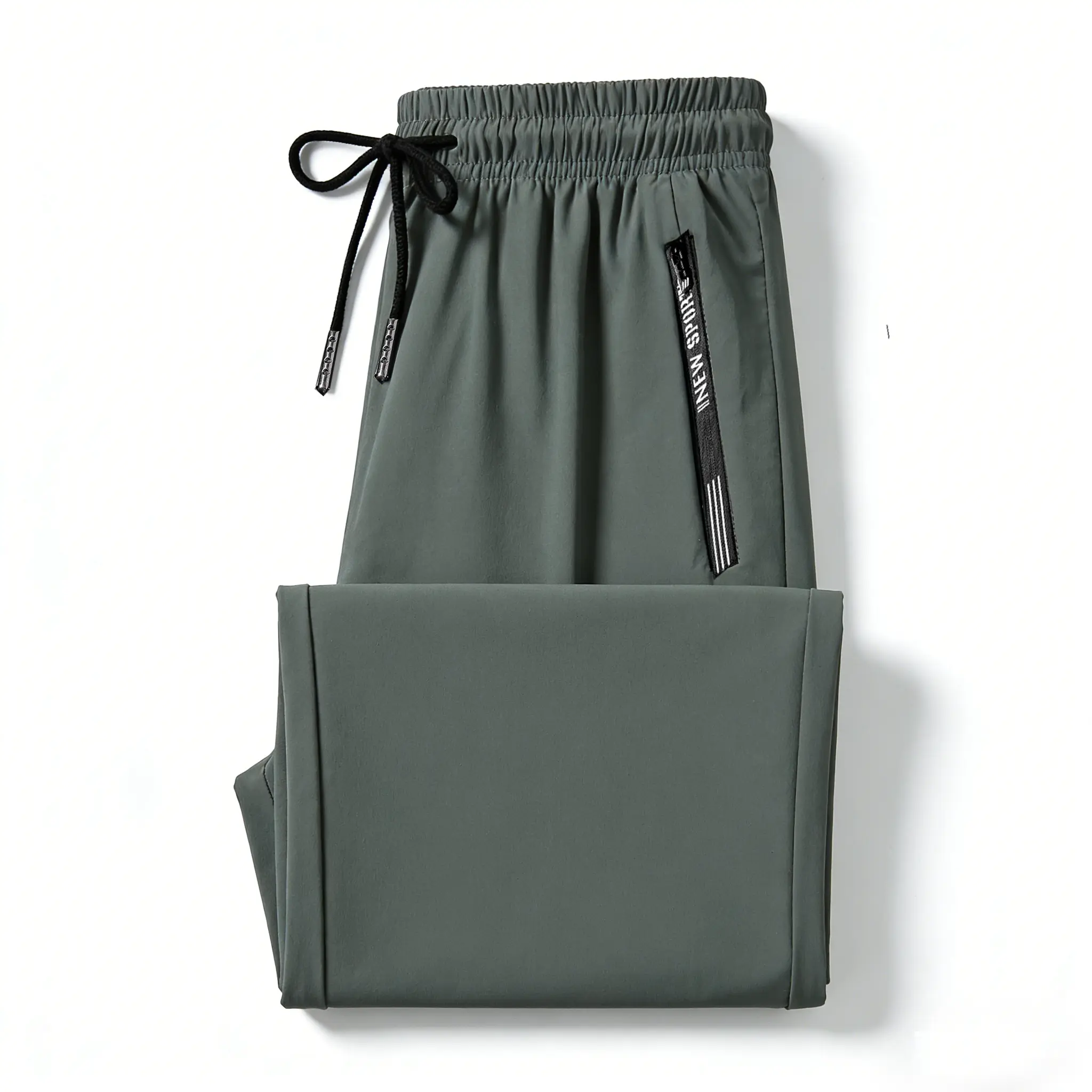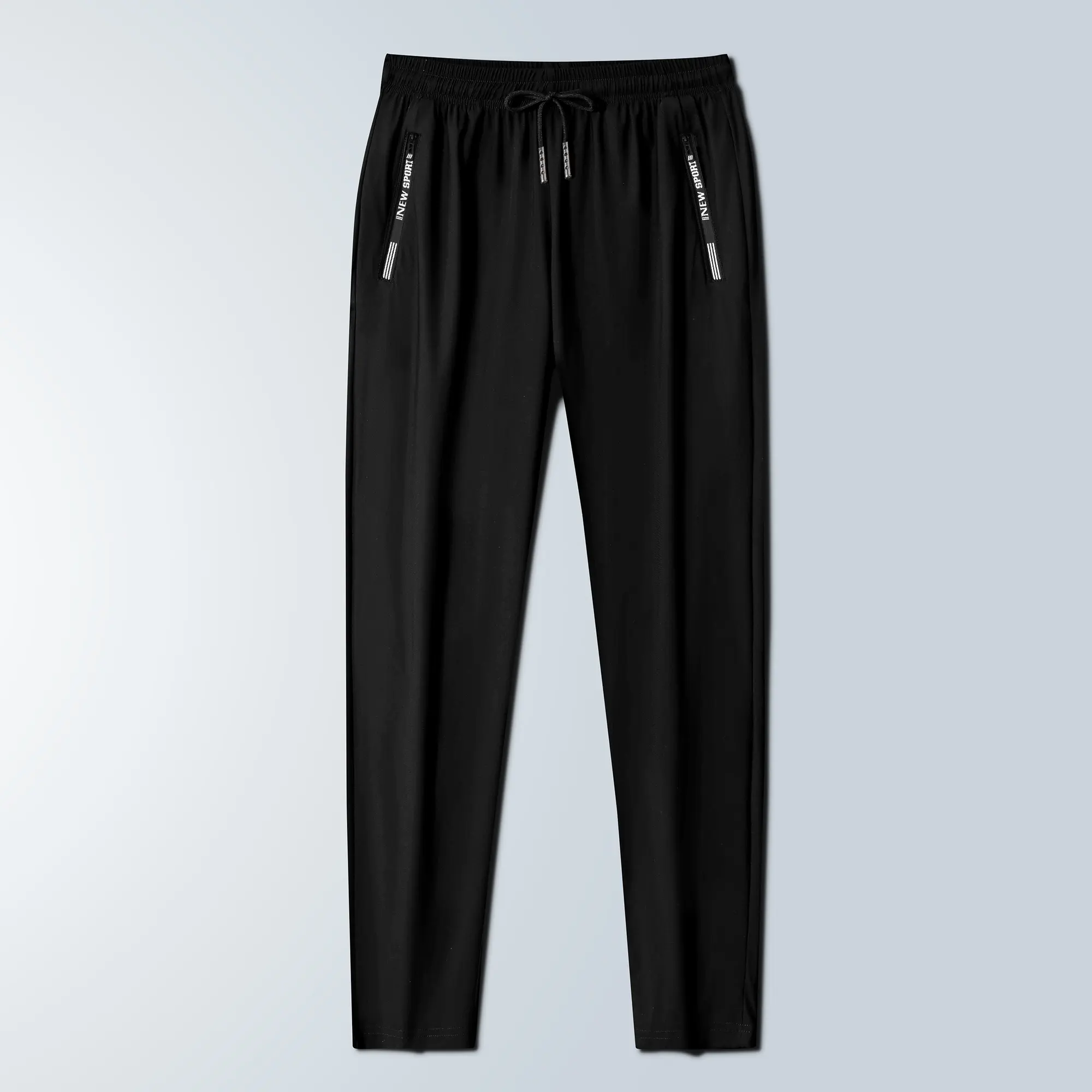 Men’s quick-dry athletic pants, elastic waistband drawstring cuffs, zippered pockets, breathable summer fitness long pants, solid color versatile for everyday casual wear