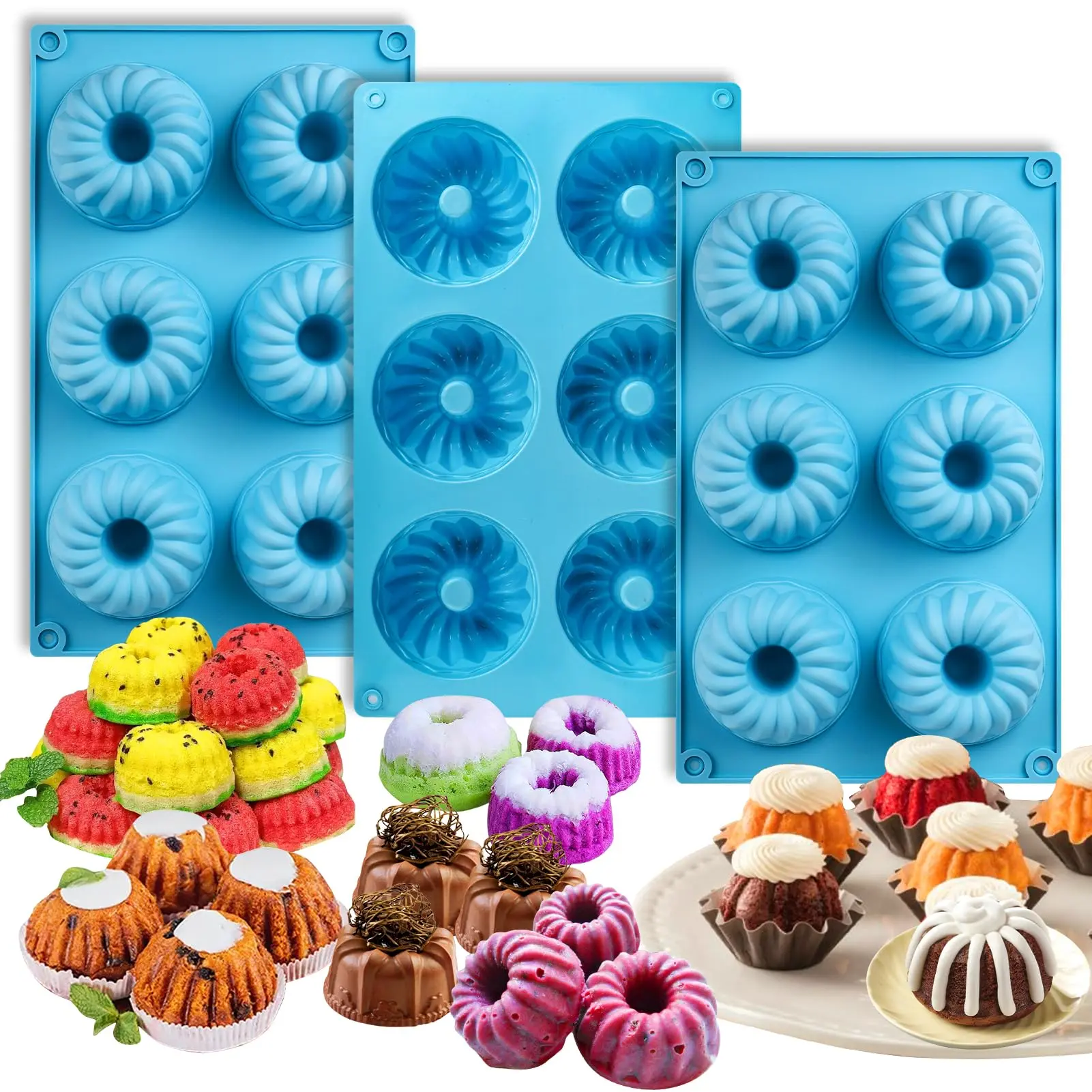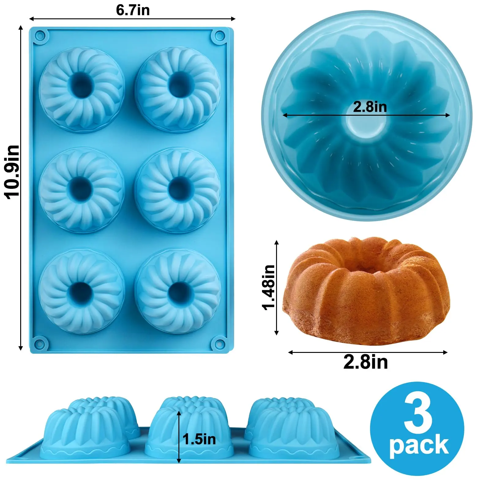 ·3PCS - 6 Cavities: can bake 18 mini cakes at the same time, saving you more time and making baking easier