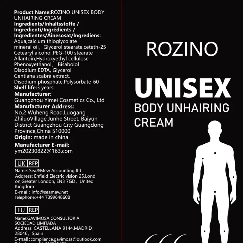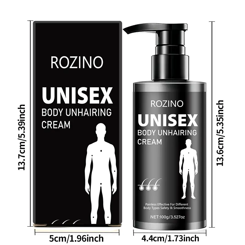Rozino Body Hair Removal Cream 100g, Black Push Tube, Easy Apply for All Skin Types