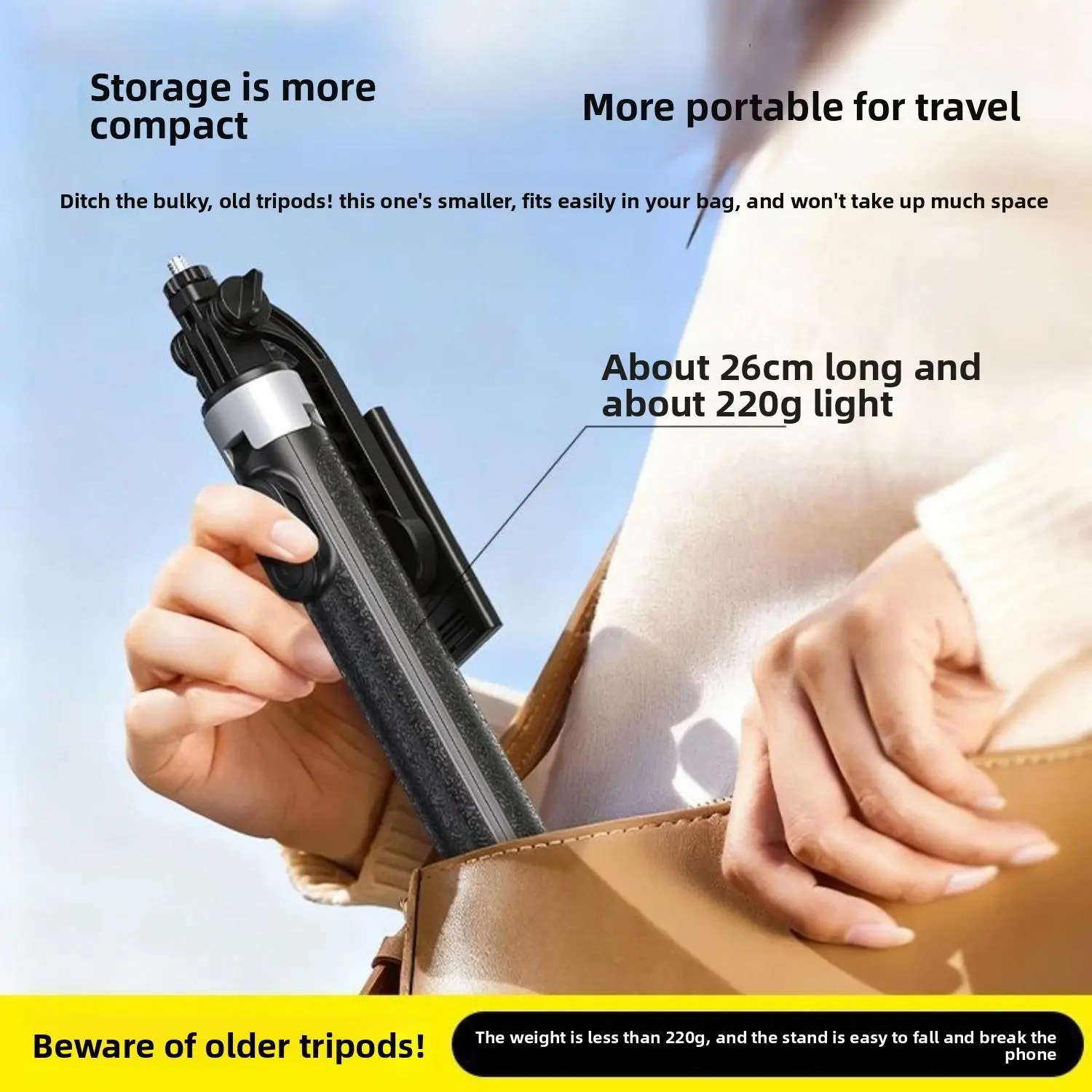 This tripod combines a selfie stick and tripod in one. It folds down to 7.87 inches, fitting easily in your pocket or bag. Perfect for solo content creators, it captures moments without bothering others. Its compact design makes it a must-have for on-the-go photographers.