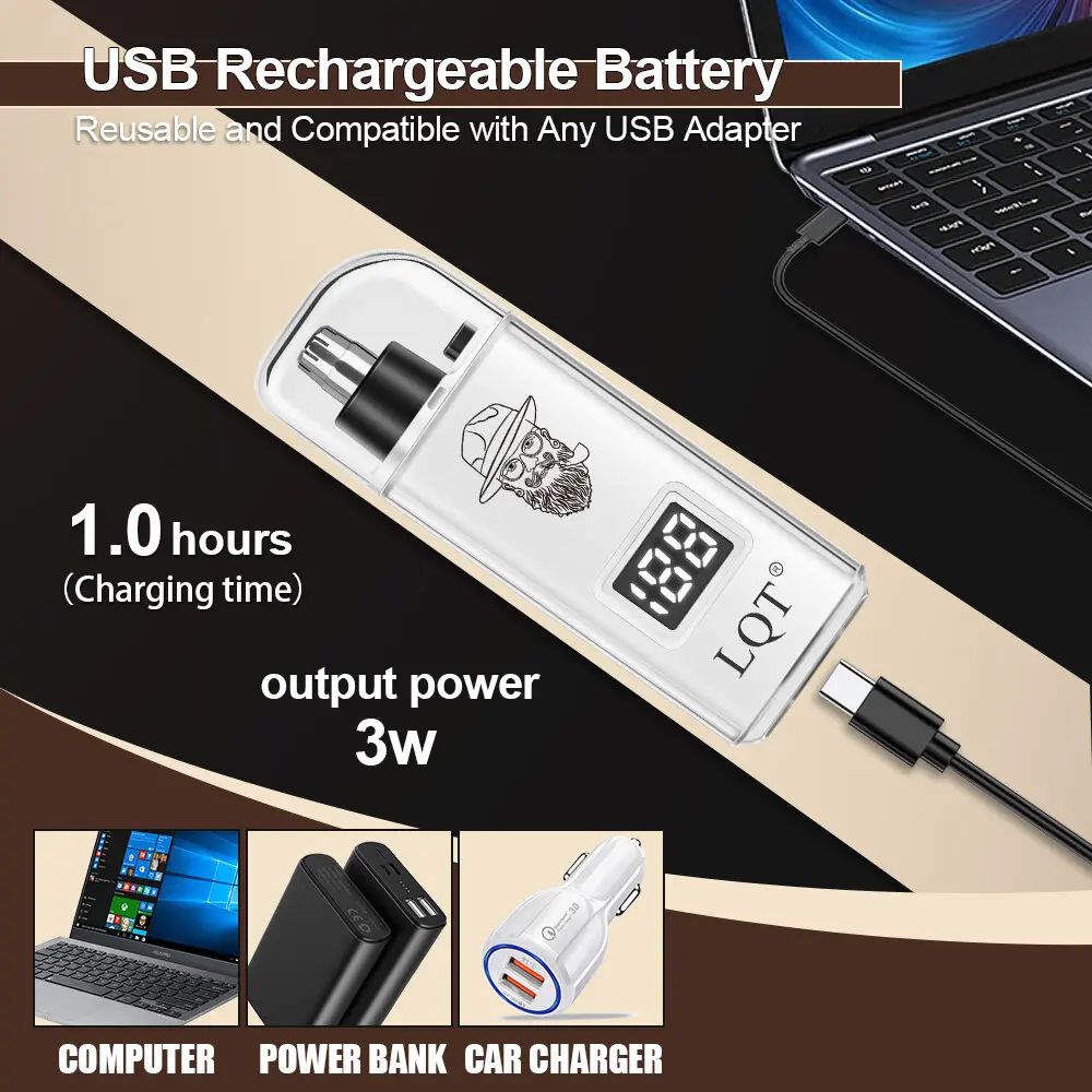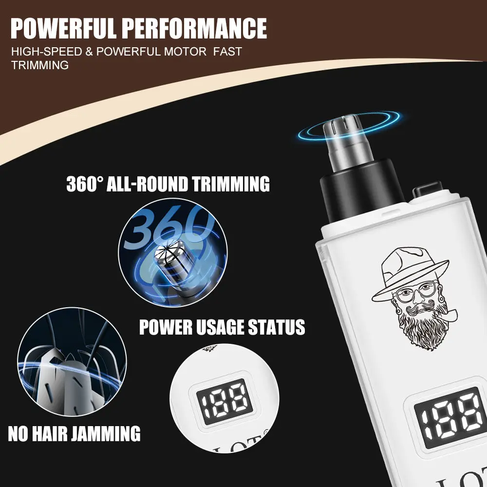This compact electric trimmer features a precision double-edged arc blade for quick, painless removal of nose, ear, and facial hair. It comes with a clear LCD display to track battery life, Type-C USB rechargeable design, and a protective storage cap.