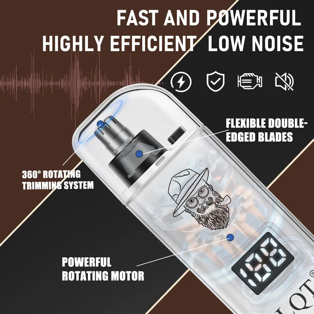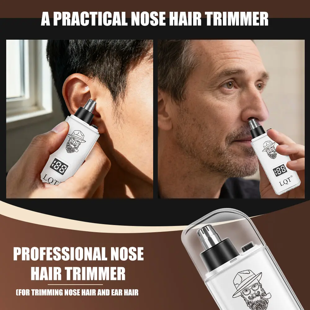 LQT Rechargeable Nose & Ear Hair Trimmer for Men, USB-C Electric Nose Hair Remover with LCD Display, Painless Dual Edge Blade Grooming Tool