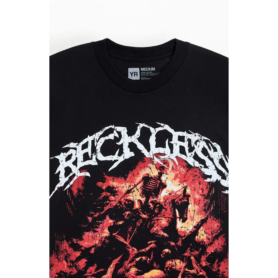 The Hellfire T-Shirt from Young & Reckless brings edgy, street-ready style with bold graphic appeal. It features short sleeves, a crew neckline, and a Reckless Hellfire graphic on the front for a standout look.