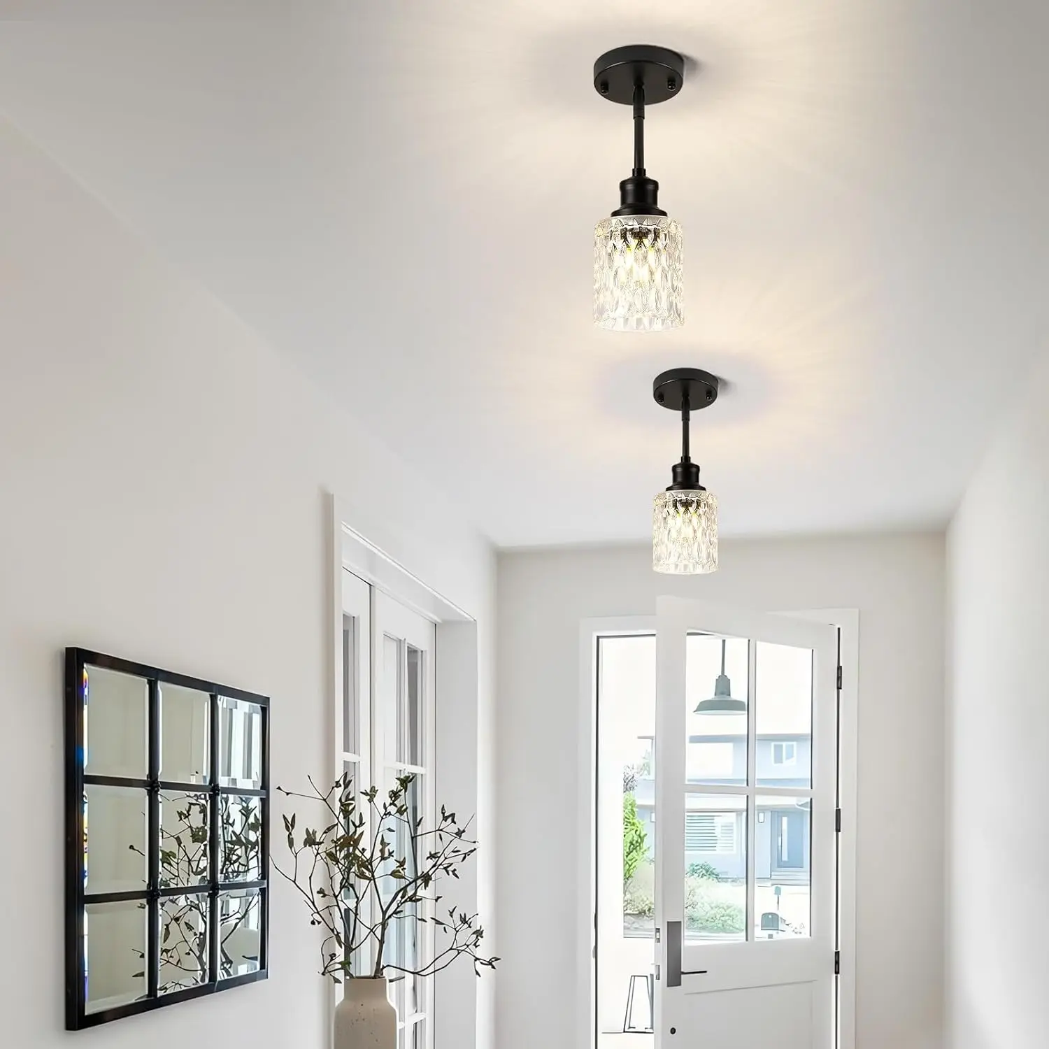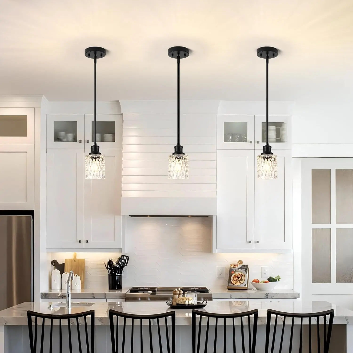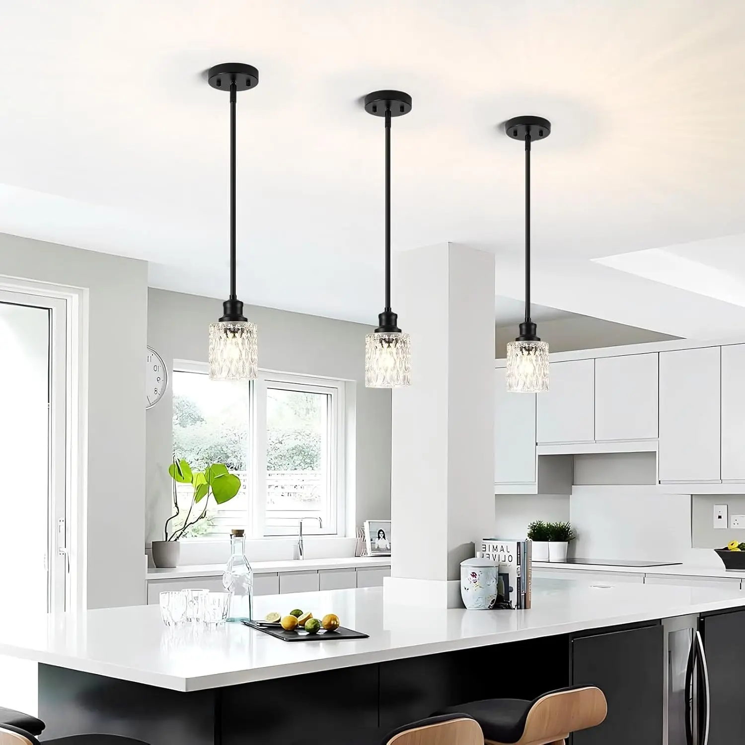 Glass Pendant Lights Kitchen Island, 1-Light Modern Black Mini Pendant with Drum Glass & Rods, Mini Hanging Light for Kitchen Sink Dining Room Bathroom
