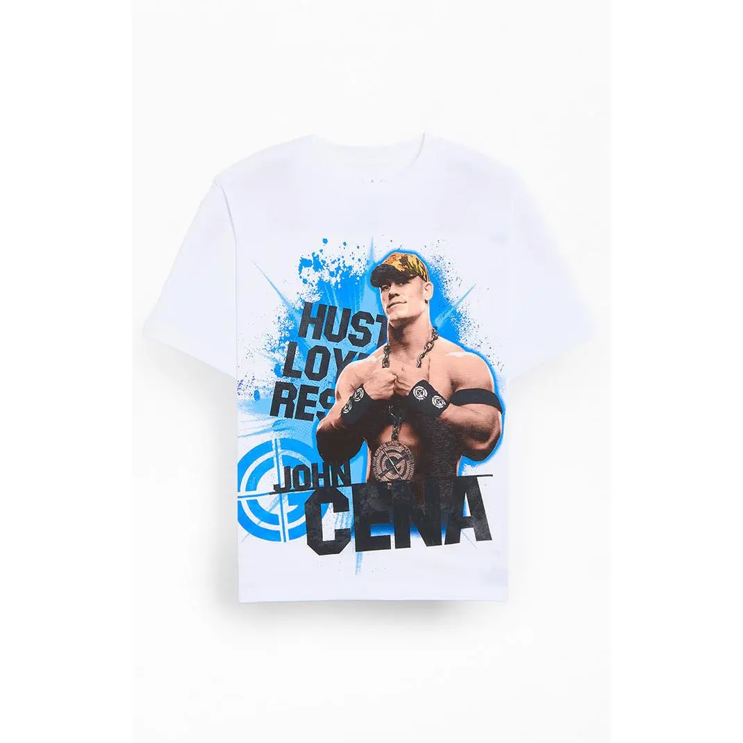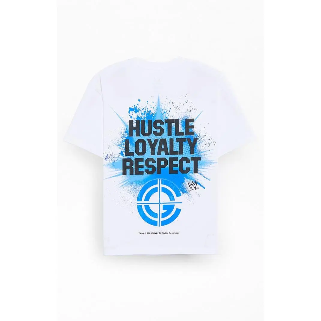 The WWE WrestleMania John Cena Splatter T-Shirt brings bold, fan-ready style to your everyday rotation. Featuring short sleeves and a crew neckline, it’s finished with a splatter-style John Cena graphic on the front and a “Hustle, Loyalty, Respect” graphic on the back.