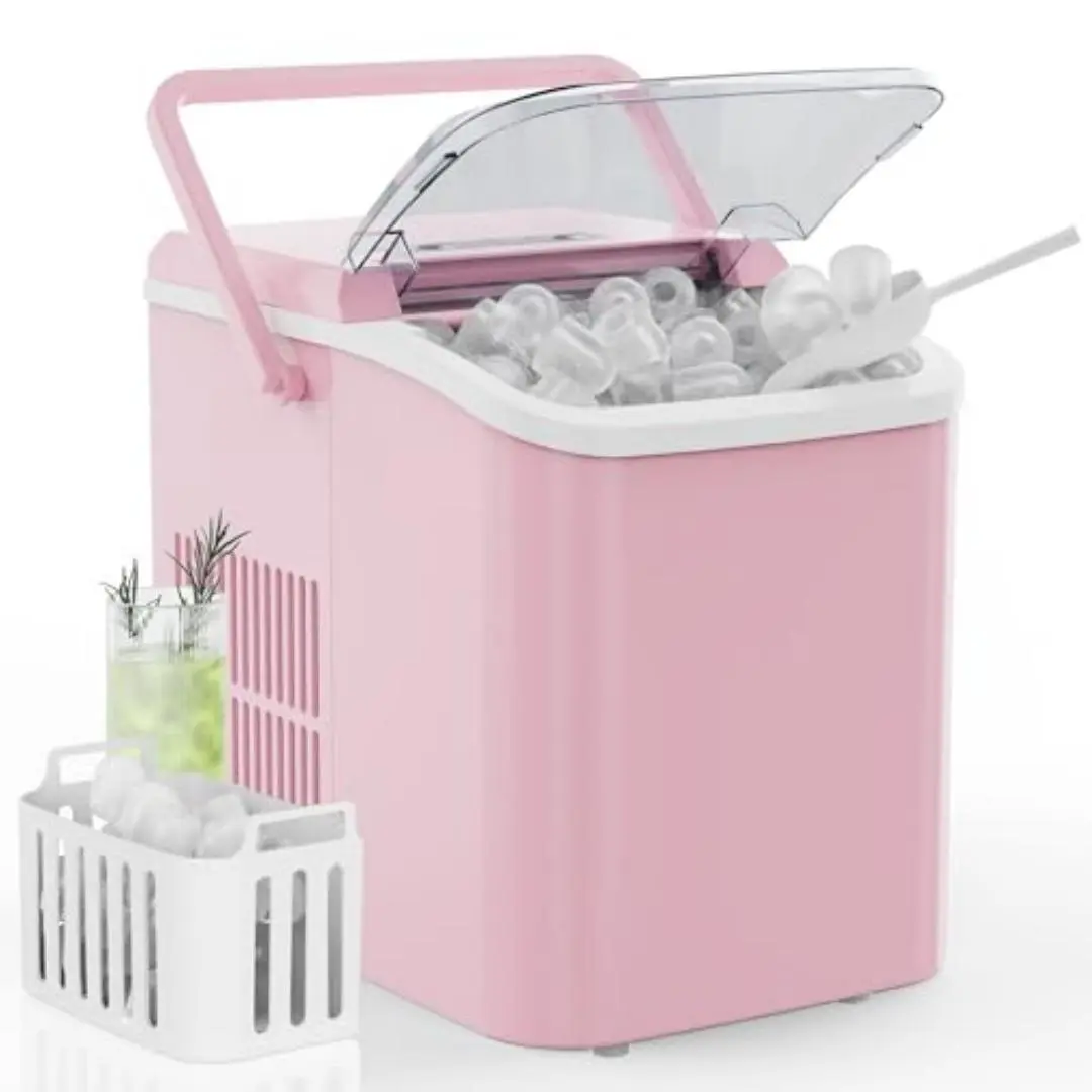 Desktop ice maker, it only takes 6 minutes to produce 9 bullet-shaped ice cubes. With a 1.5L water tank, the maximum daily ice-making capacity can reach 26.5 pounds, meeting various needs such as daily household use, gatherings with friends, and beverage preparation. The transparent window design allows you to observe the ice-making process in real time.