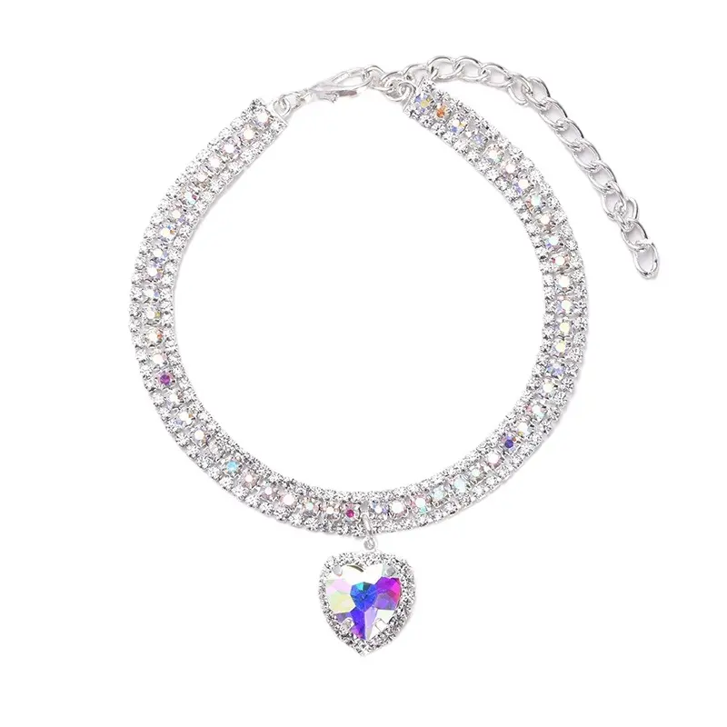 Sparkle and Shine with Our Elegant Rhinestone Heart Pendant Necklace for Pets!