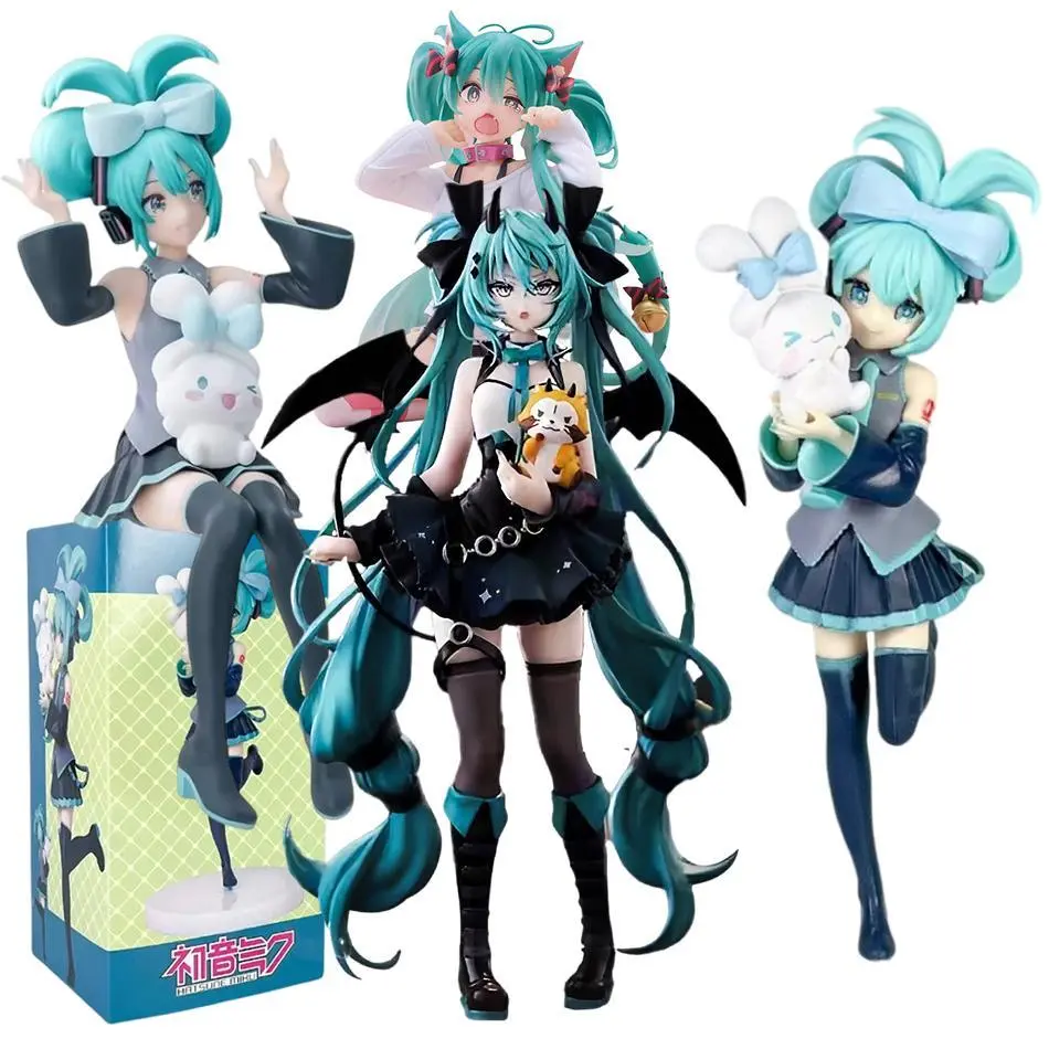 Anime Hatsune Miku Cos Raccoon Demon Cat Ears Cinnamoroll Kawaii Miku Girl Anime Figure PVC Collection Model Doll Toy