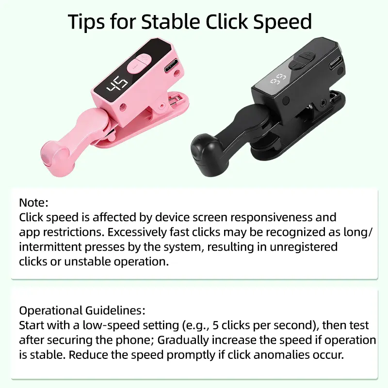 ·【Please Note】Some mobile phone models cannot receive click signals with excessively high frequencies. Therefore, if you find that the clicker is not working, Please lower the click frequency of the clicker to below 10 clicks/s.