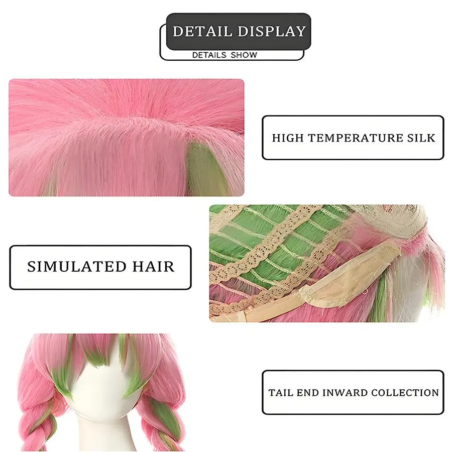 Anime Mitsuri Kanroji Cosplay Synthetic Wig Long Pink Green Braid Heat Resistant Hair Authentic Cosplay Wigs
