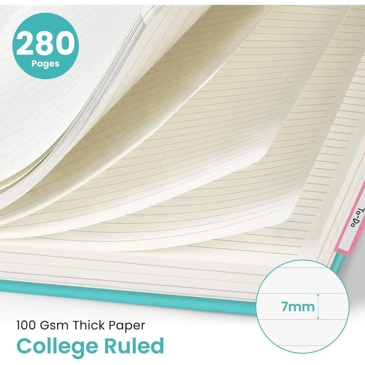 Premium 280 Pages Thick Paper: This hardcover college ruled notebook contains 280 pages (140 sheets) of thick 100gsm paper for a smooth writing experience. The paper resists ink bleed-through and ghosting, while the large spiral notebook format offers ample space for notes, planning, and organization.