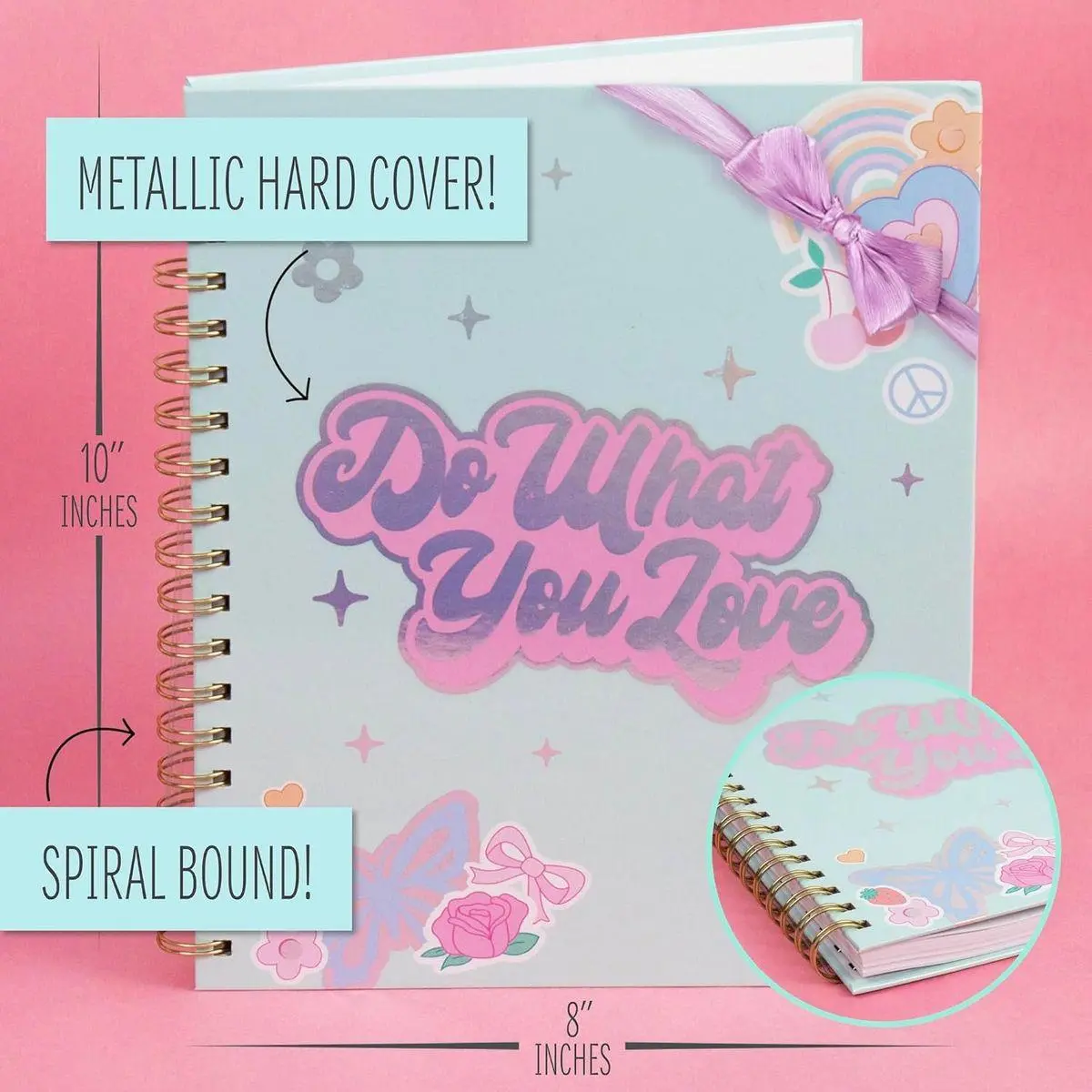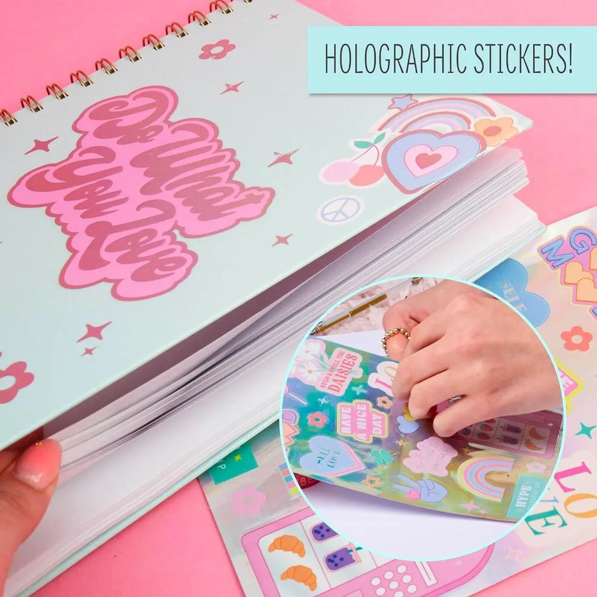 AESTHETIC STICKERS: Decorate your entries with holographic stickers that bring good vibes only, featuring retro phrases and super cute graphics.