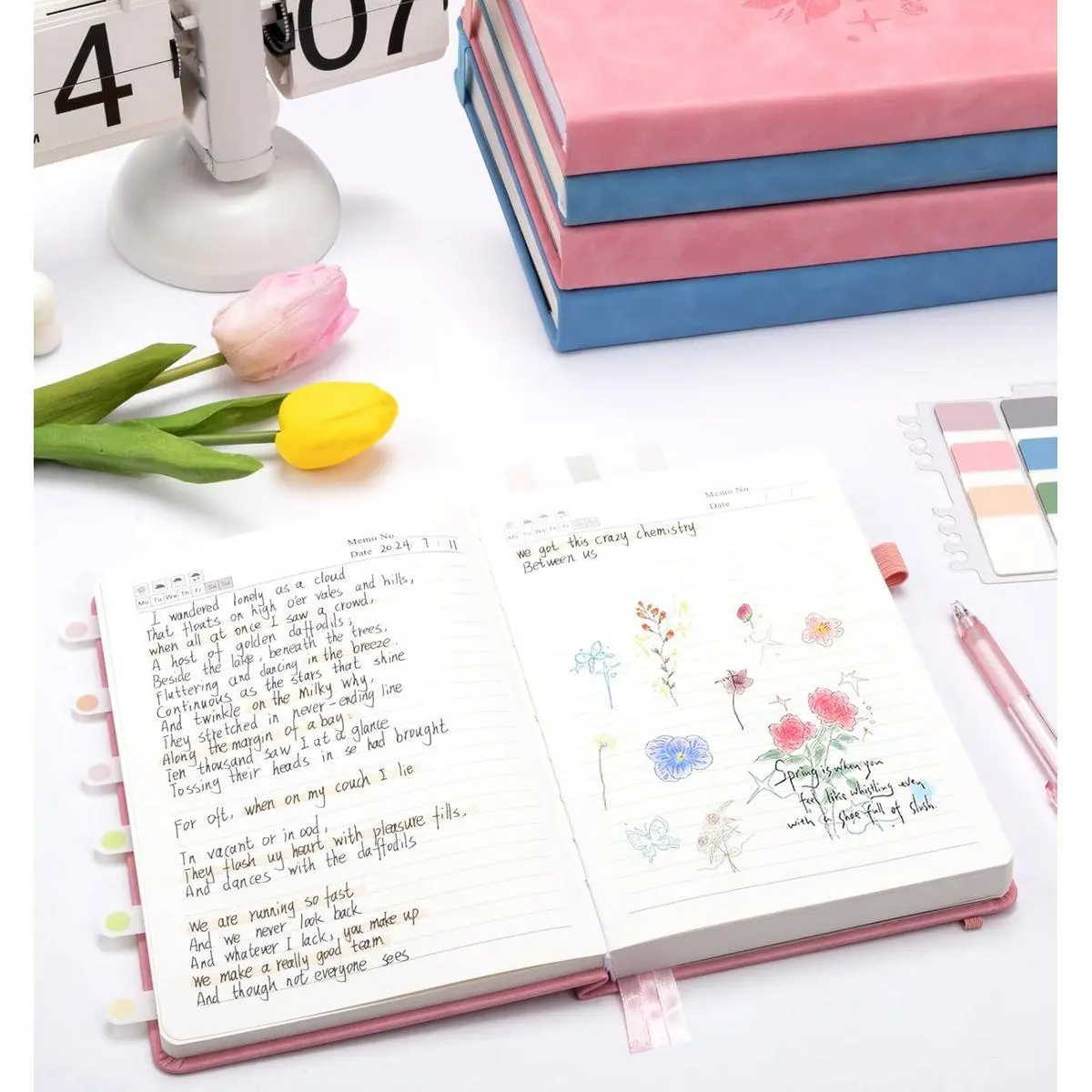 【365 Pages&100Gsm Thick Journal】365 pages notebook provides ample writing space. A 7mm space classic college rule notebook features 100gsm acid-free light ivory paper, thicker than regular paper, won't cause bleeding, ghosting, or smudge, and is suitable for most pens.