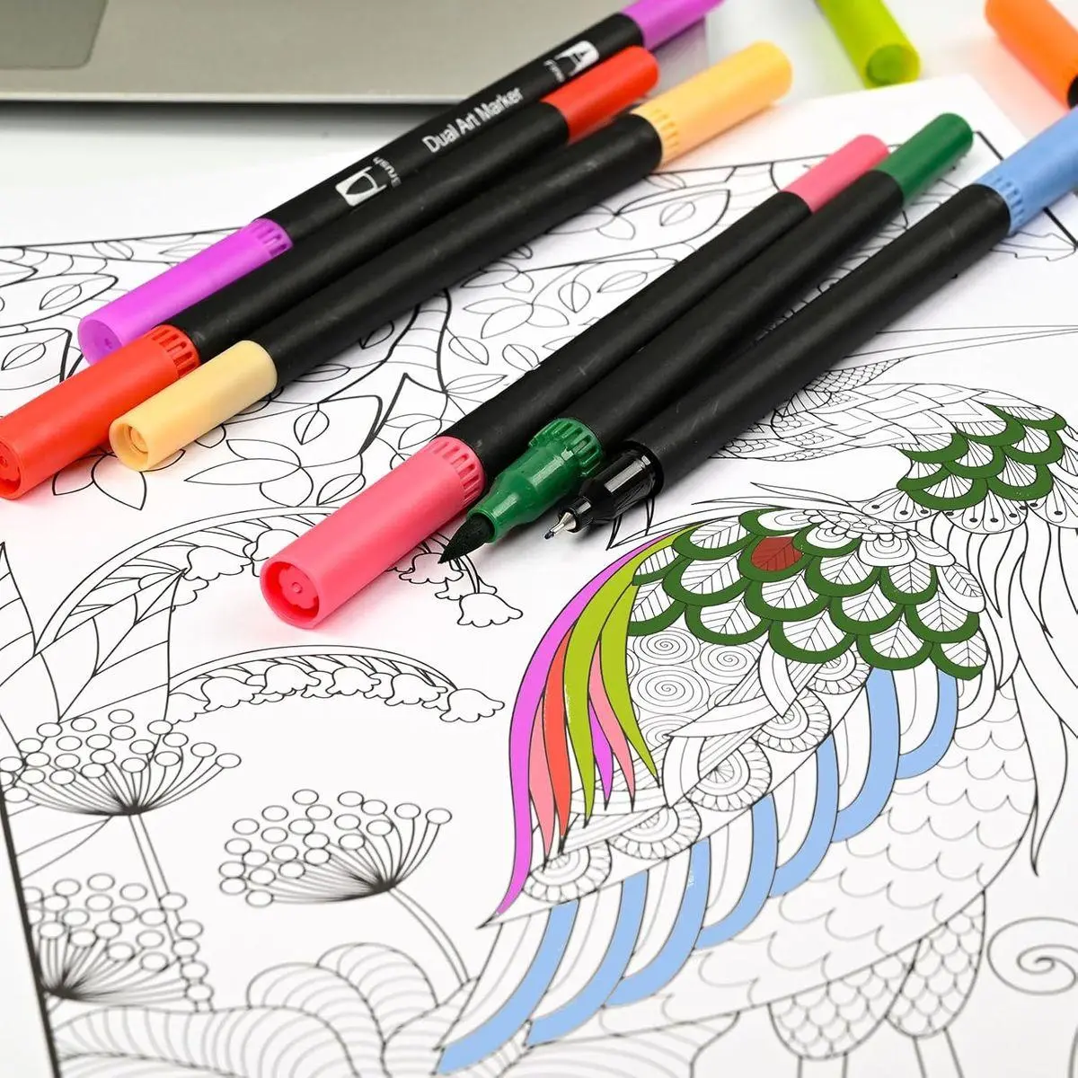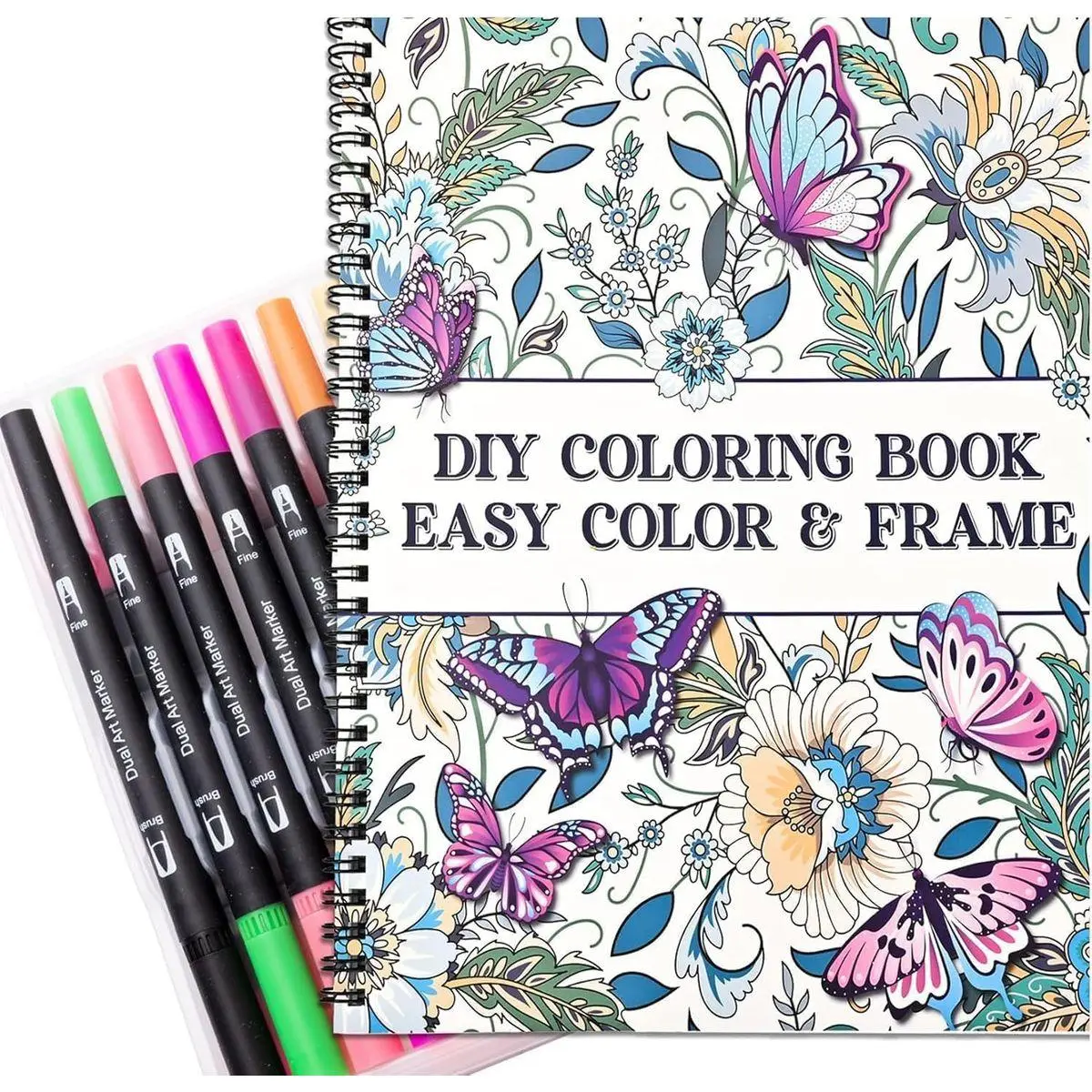 Coloring Book Gift Set:A perfect stress reliever, Includes 36 dual-tip markers.Durable, long-lasting felt tips for broad and fine lines. Vibrant colors to bring your artwork to life