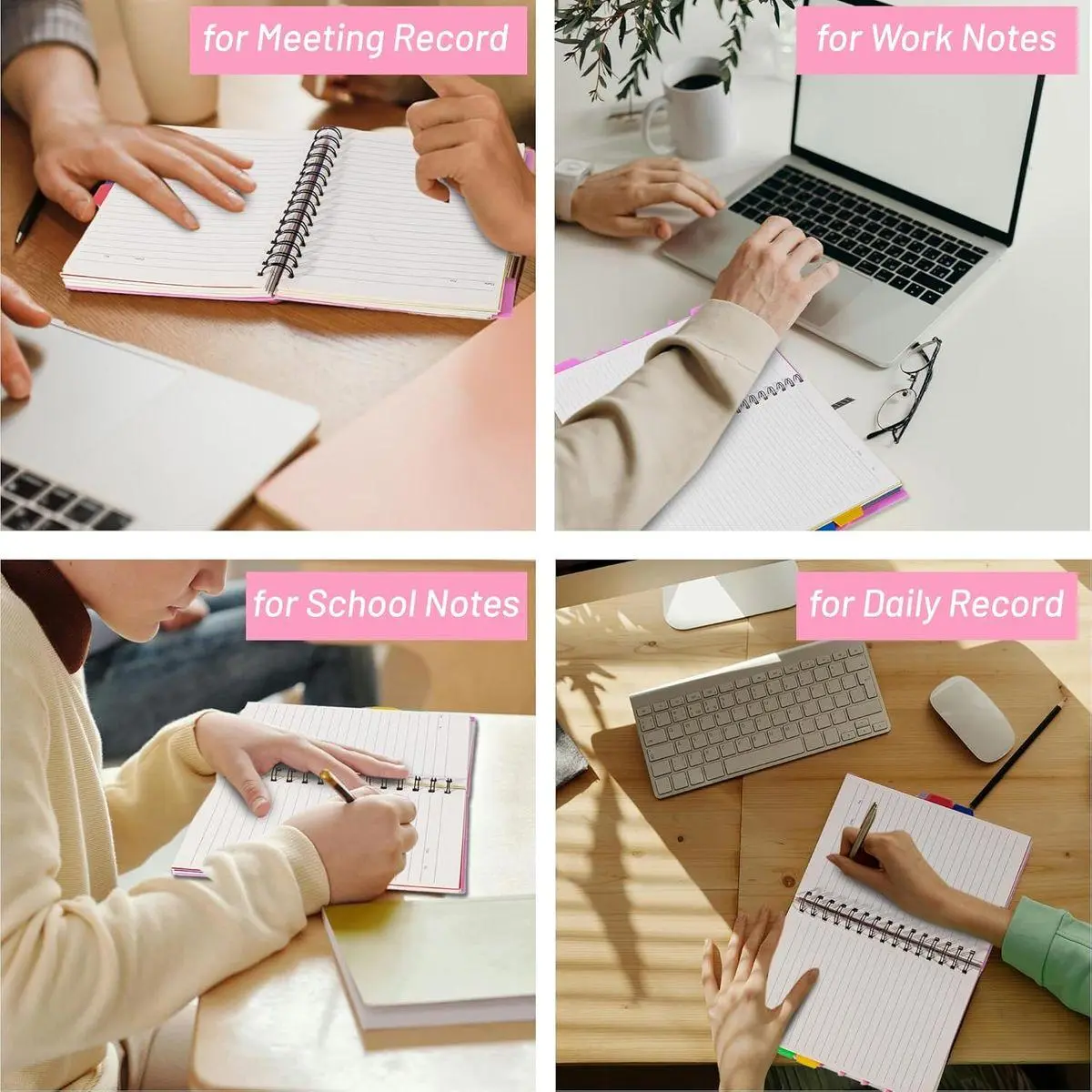 【Double Spiral Binding Notebook】: The strong double spiral binding is less likely to fall apart than wire binding, ensuring that the inner pages are organized. The college ruled notebook with tabs can lay flat to take notes, so no one needs to worry whether they are left-handed or right-handed writers. For note taking convenience, you can also flip the pink spiral notebook 360°.