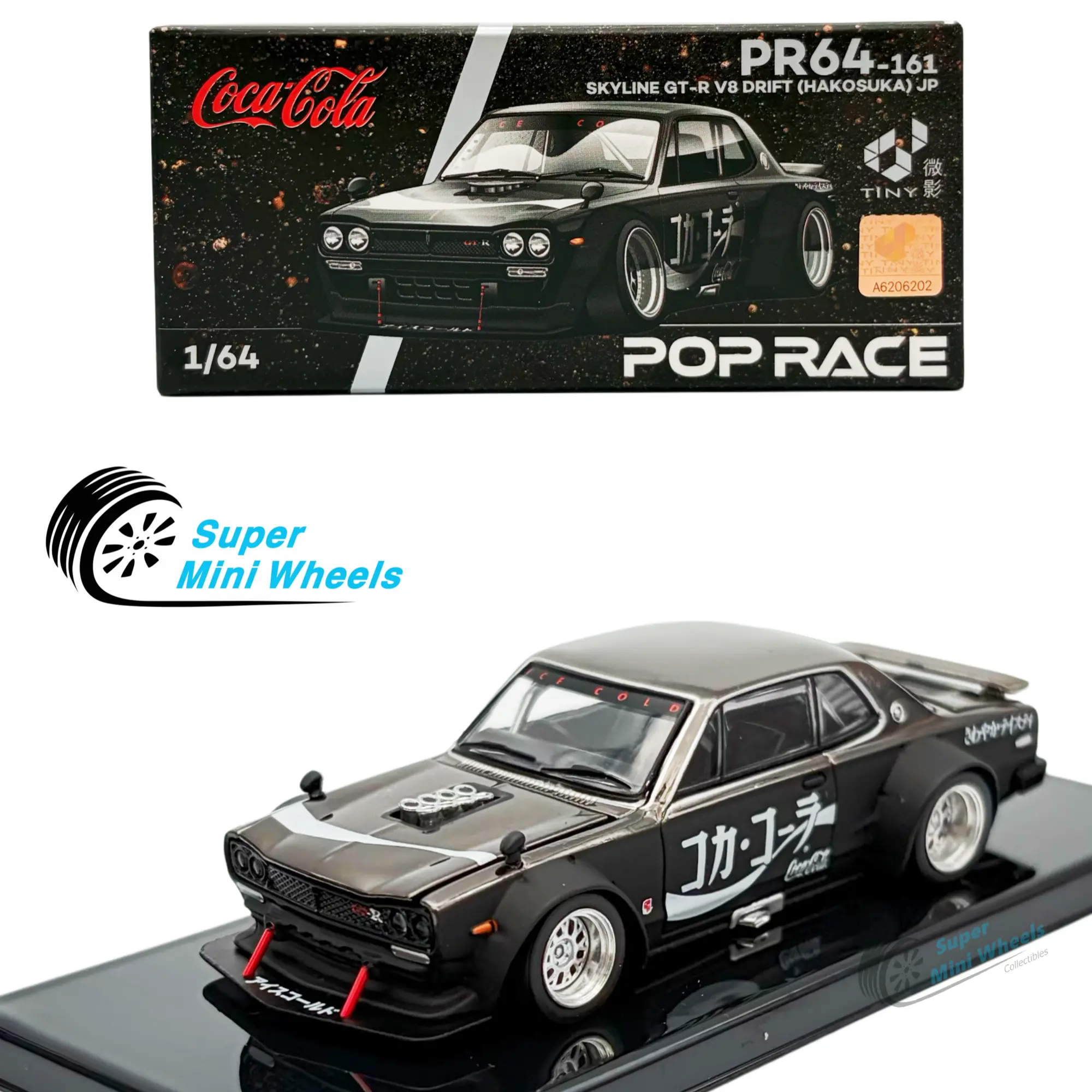 5. Pop Race 1:64 Nissan GT-R V8 Drift Hakosuka JP Coca Cola Chrome Black #161