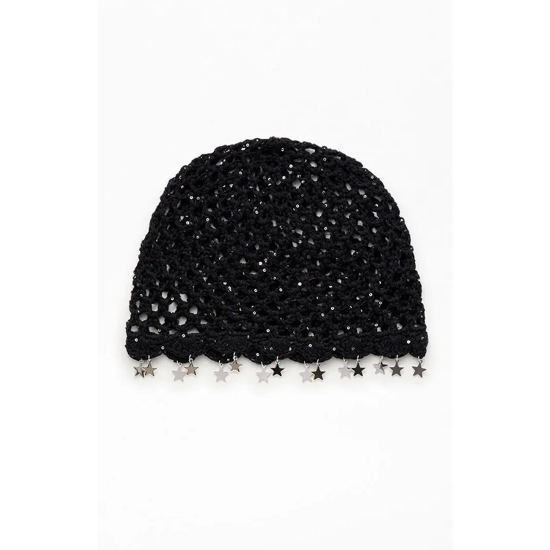 Pacsun’s Celestial Crochet Cap brings dreamy, beachy vibes to your everyday look with a laid-back, trend-forward feel. Designed with open-knit crochet fabric, it features delicate silver star charm trimming and a fitted cap silhouette for the perfect mix of cozy and cool.