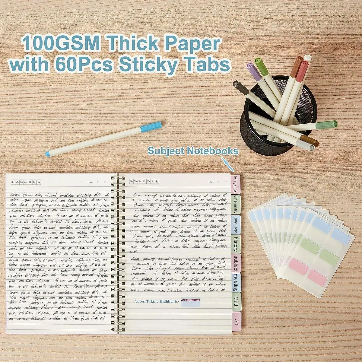 【Sturdy Double Spiral Binding】Featuring a metal double spiral binding design, the page flipping is smooth without paper jams, and supports 360° free flipping for writing. The structure is sturdy and durable, not prone to loose or falling pages, and can be kept neat even after frequent flipping. The flat design makes writing smoother and more natural, ensuring a good experience for studying, working, and recording plans.