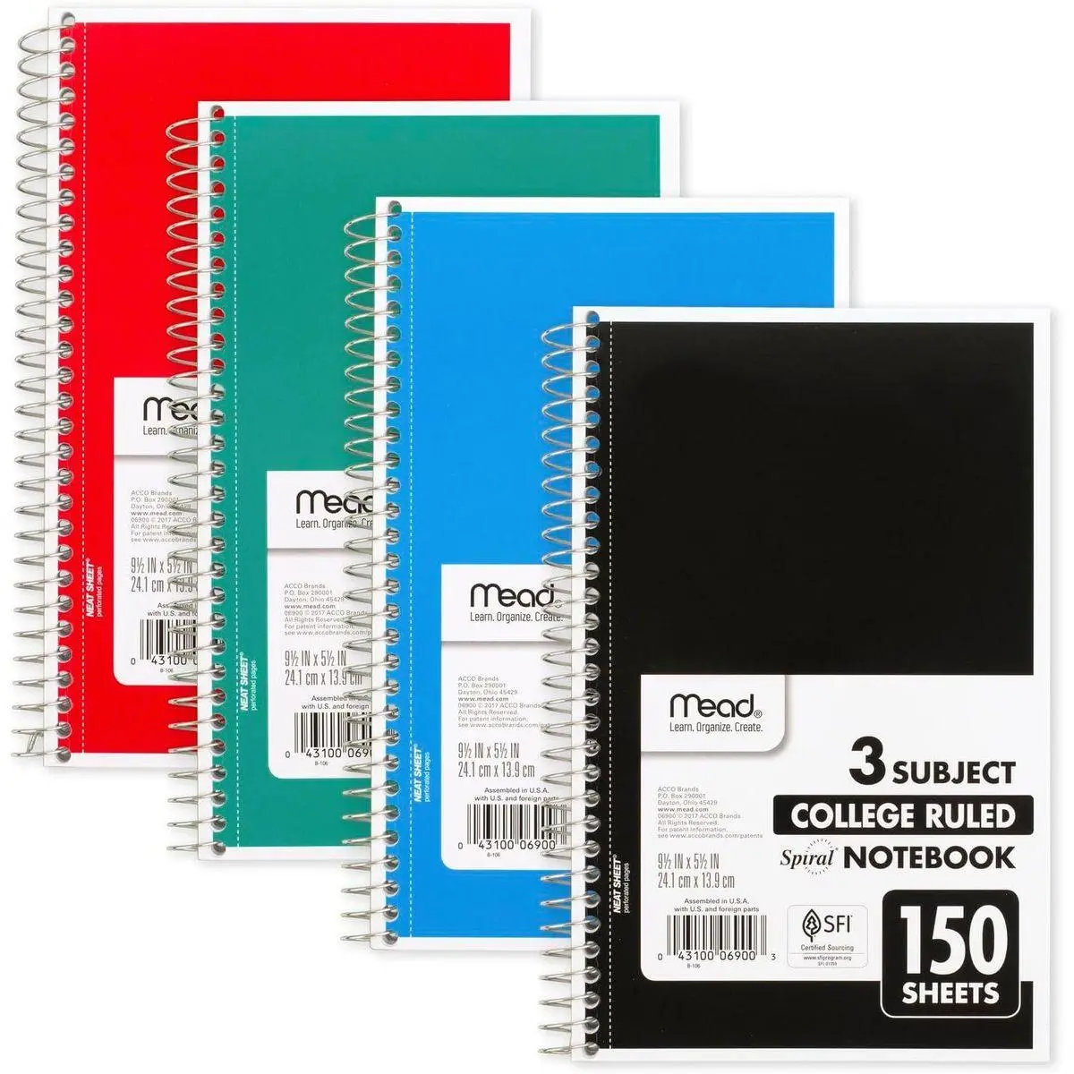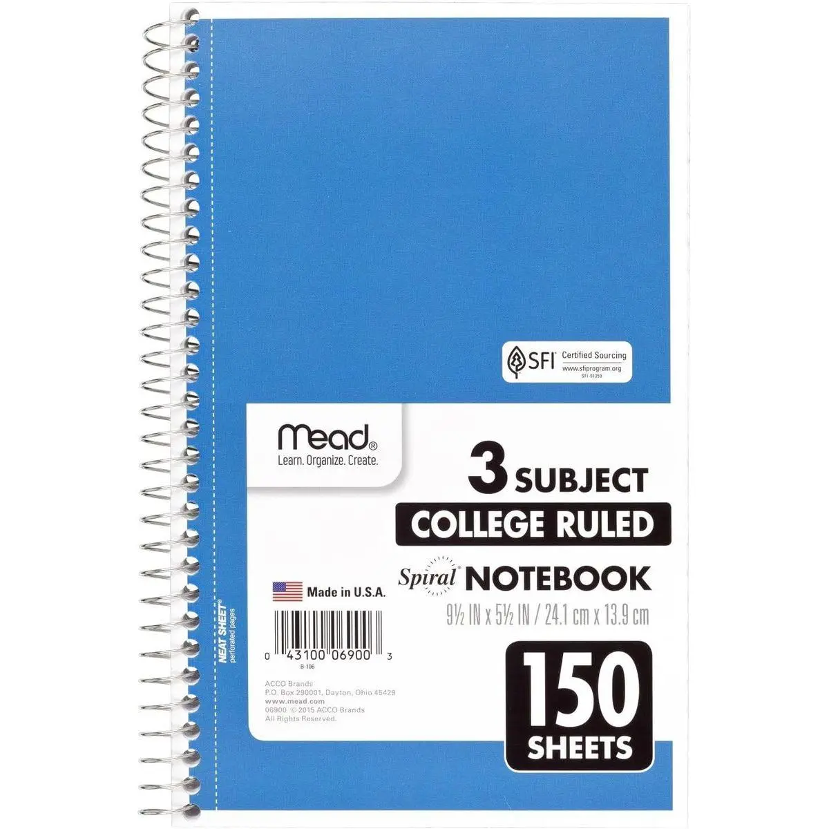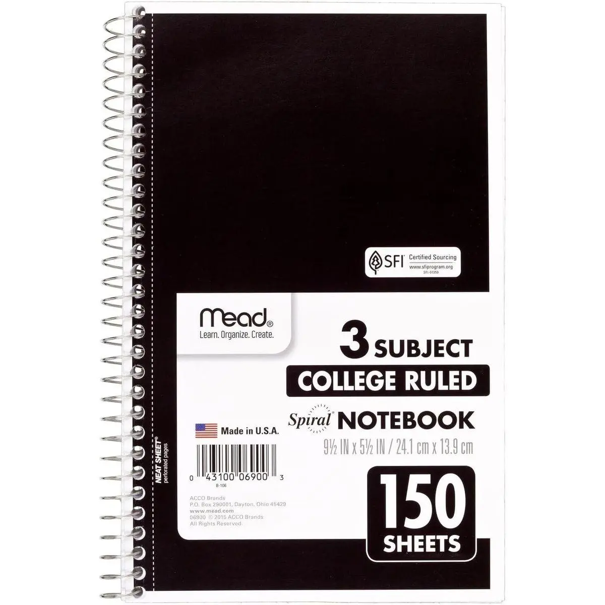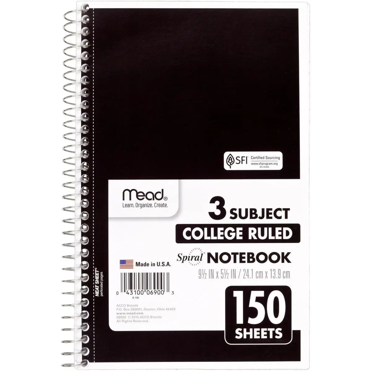 Stay on top of your homework, in-class assignments, projects and more with this Mead 3 Subject Spiral Notebook