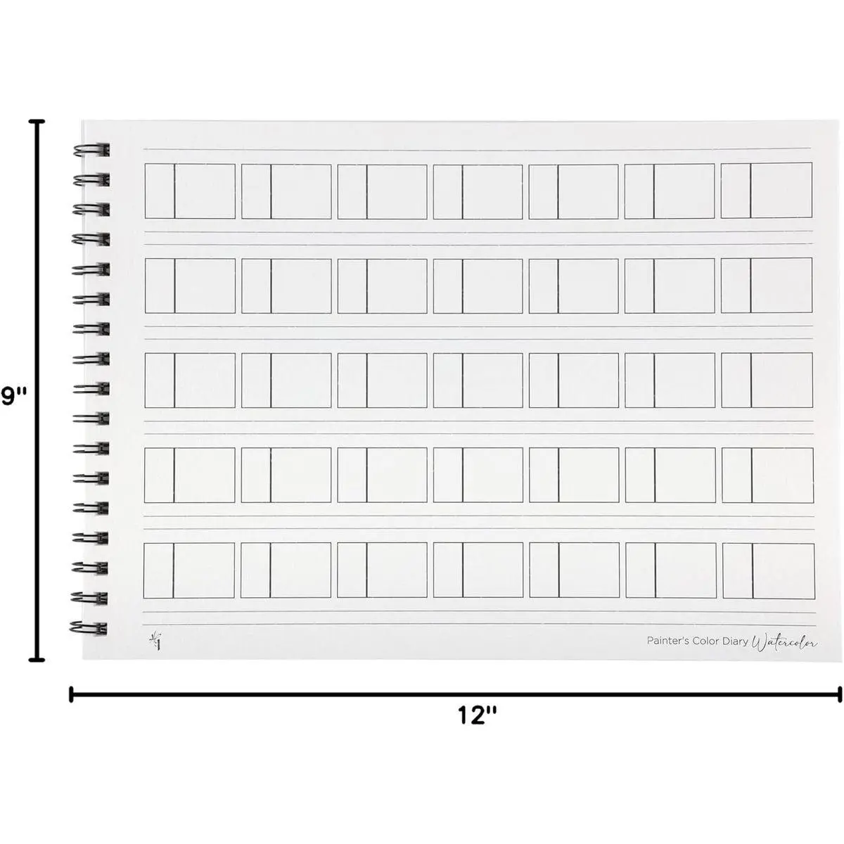 Painters Color Diary - 9x12, 140lb Spiral-Bound Acid-Free Color Swatch Book with 10 Pages for Watercolor & Mixed Media - Single