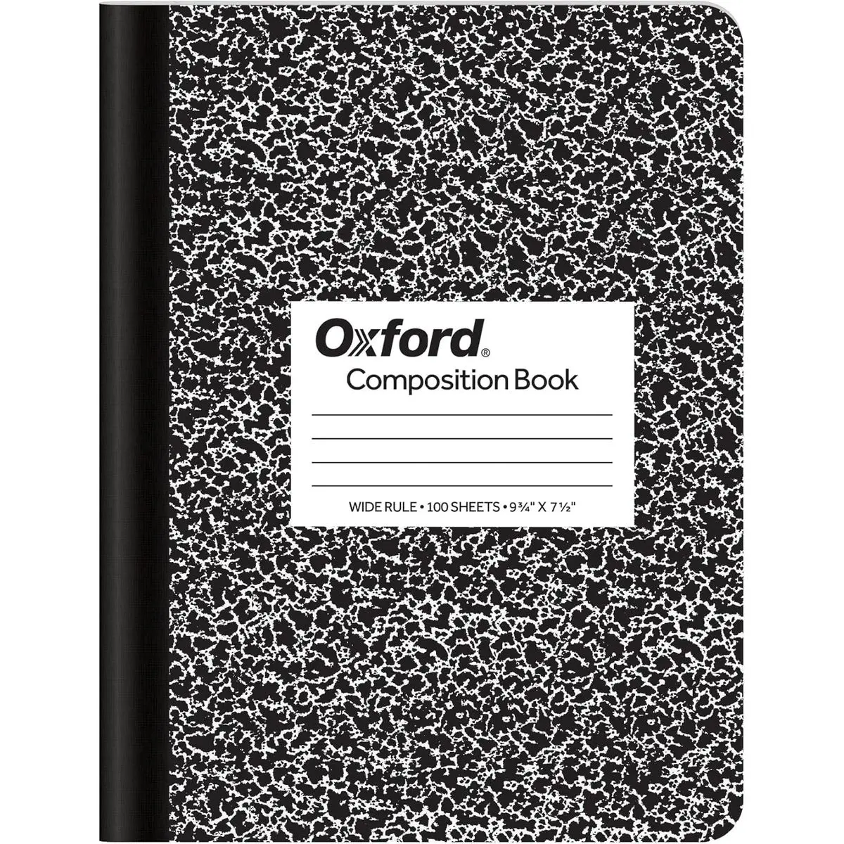 Quality, durable composition book at a reasonable price; 9-3/4 x 7-1/2 inches; wide-ruled, quality paper; black and white marble cover; 100 sheets