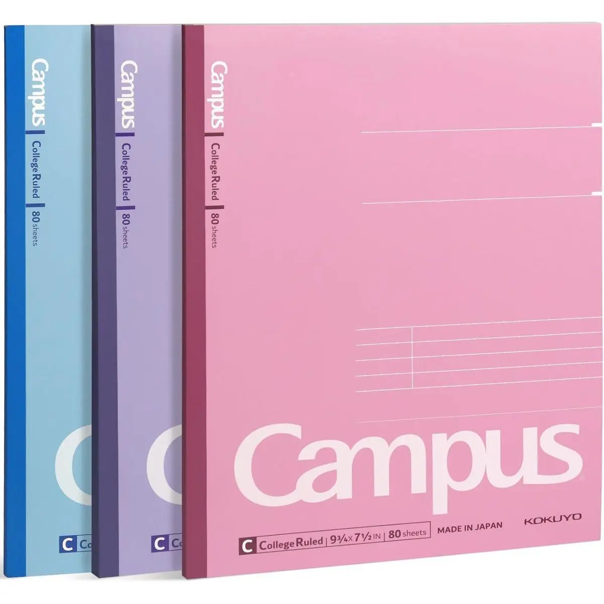 Journaling Notebook: Japan imported Kokuyo Pink Blue Lavender colors 3 Pcs 9.75" x 7.5" Lined Notebooks. Every Composition note book has 80 double-sided sheets (160 pages), perfect fight ink bleed notebook for in-class assignments homework projects. Composition dot ruled lined paper notebook journal is great for permanent note-taking in class or at home