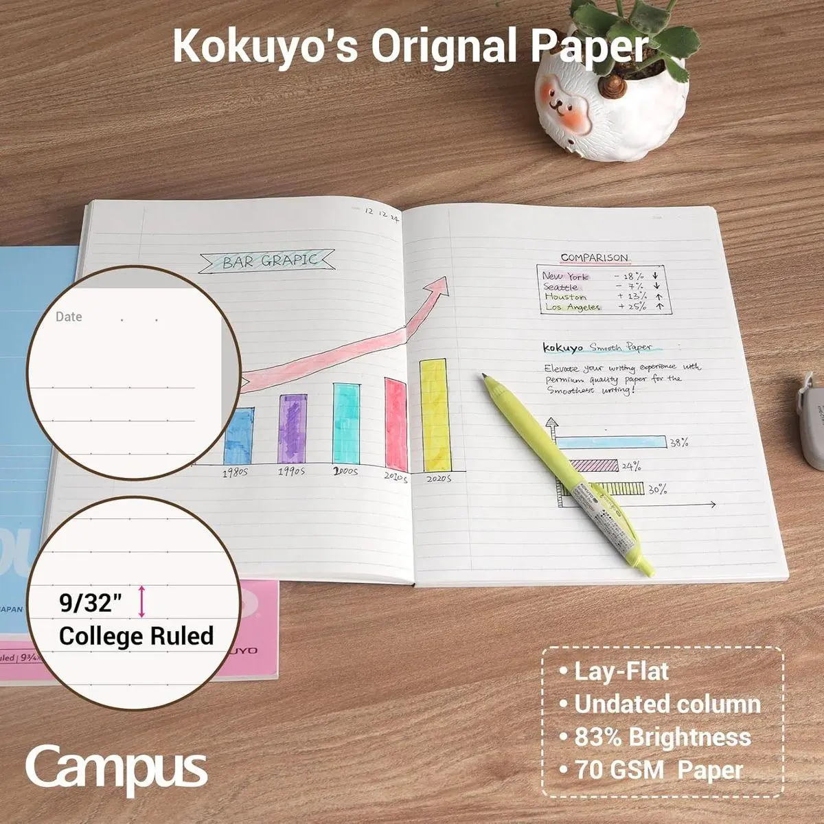Kokuyo Orignal Paper: Kokuyo's famous smooth slik paper is not only perfectly suitable for common pencils, fountain pens and ballpoint pens, but also does not bleed when used with markers and highlighters. Suitable for busniess, school, diary journals, drawing, sketching, travel journals, work notebooks or for taking notes in college classes or meetings