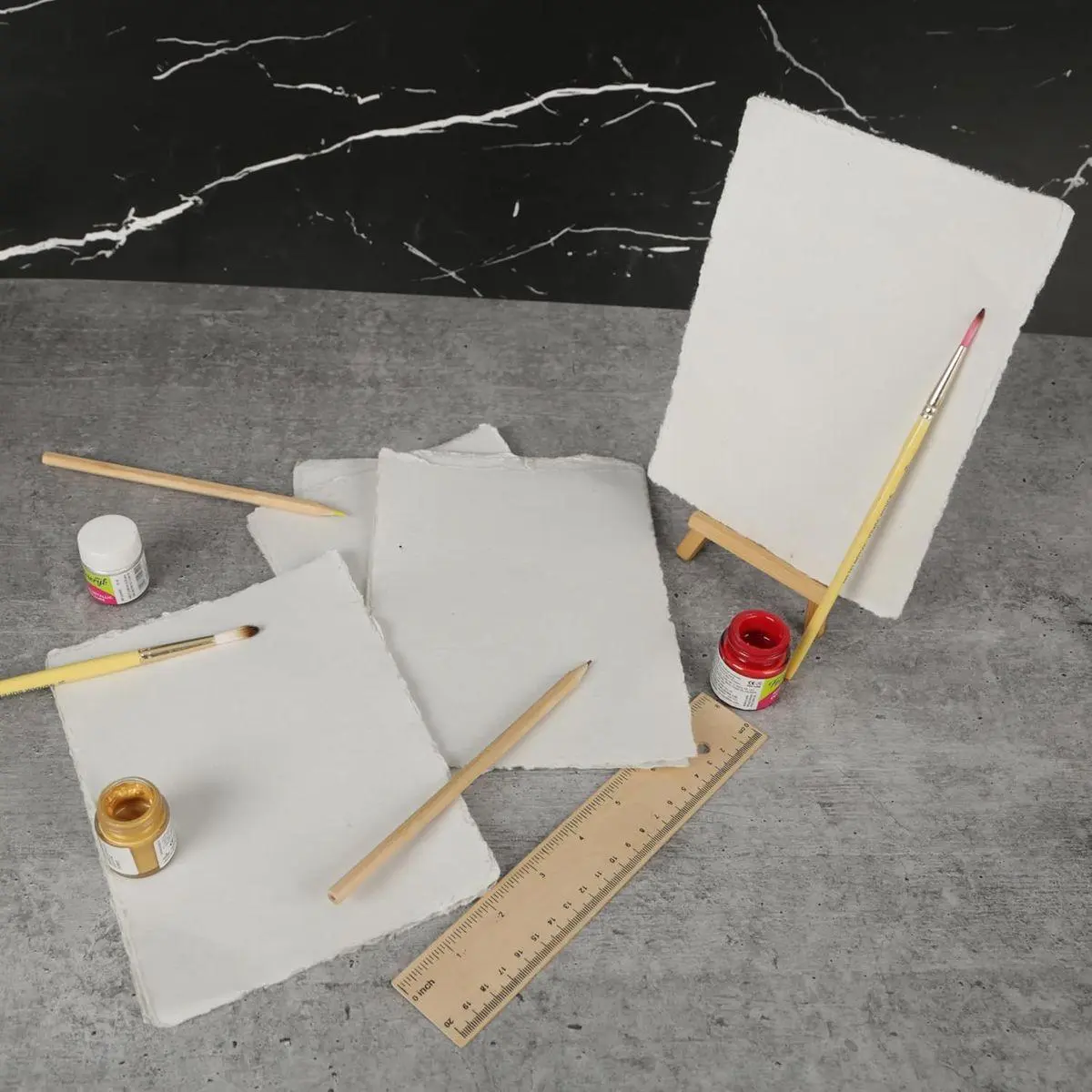 High-Quality Deckle Edge Paper: This set includes 25 sheets of premium 6x4-inch 200 GSM thick deckle edge paper. Handcrafted with a unique textured and rough surface, it adds a vintage charm to your artistic and creative projects. Perfect for professionals and hobbyists alike.