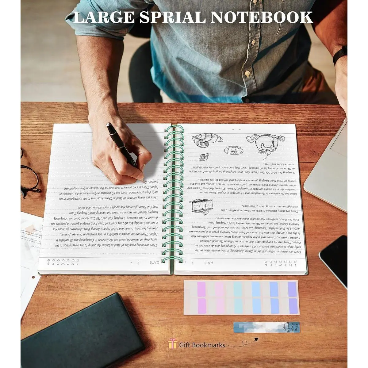 【Strong Metal Twin-Wire】 Our spiral bound journal has a sturdy gold-color double wire spiral helps you turn the page easily and keeps pages attached reliably. Metal wire ring makes it easy to tear out pages without disturbing the rest of the notebook. The 180° lay flat design makes writing easier, reading more convenient, and taking notes more efficient. If the cover of the notebook is stuck in the spiral coil when it is closed, turn the spiral coil to ensure that the cover is closed smoothly.