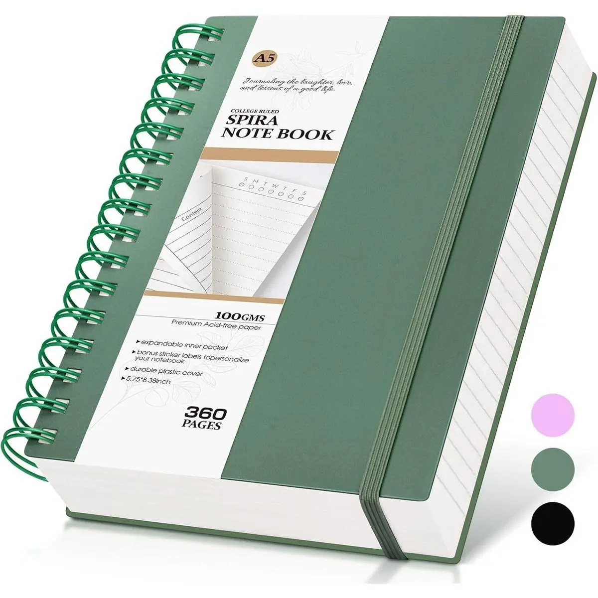 5. Spiral Notebook Journal,360 Pages College Ruled Notebook, Lined Thick Journals for Women Men,A5 Thick Spiral Journal for Writing,100GSM Paper, Spiral Notebooks for Work School 5.5"x8.5" Green