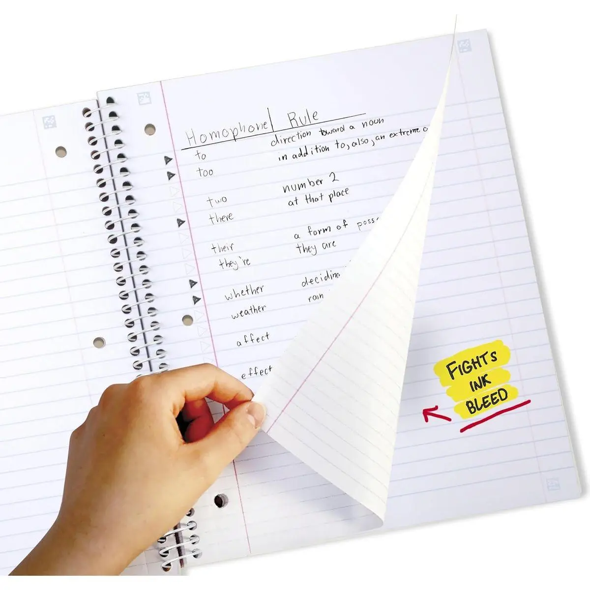 1 subject notebook has 80 double-sided, wide ruled sheets that fight ink bleed and are perforated for easy tear out. Sheets measure 8" x 10-1/2" when torn out.