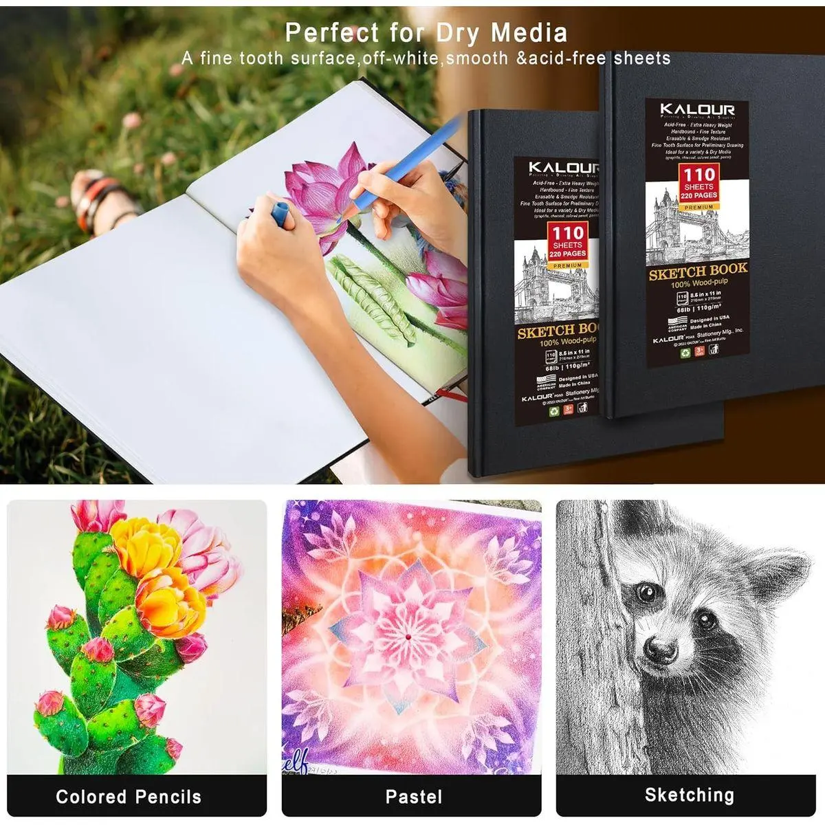 High-Quality Sketching Surface:Immerse yourself in the joy of sketching on premium acid-free paper, weighing 68lb/110gsm. The fine-toothed surface ensures an exquisite canvas for dry media, making it perfect for pencils, pens, charcoal, and more.