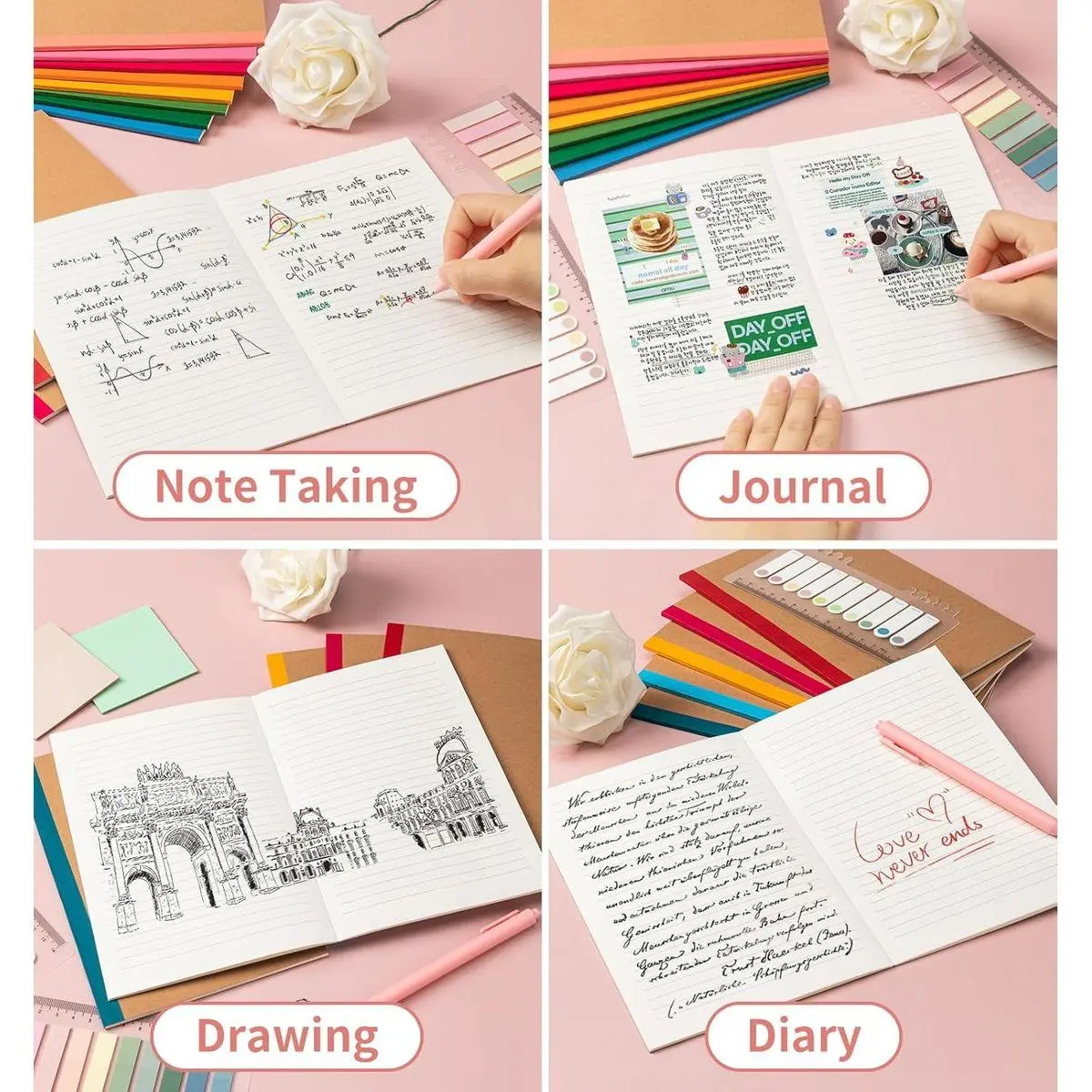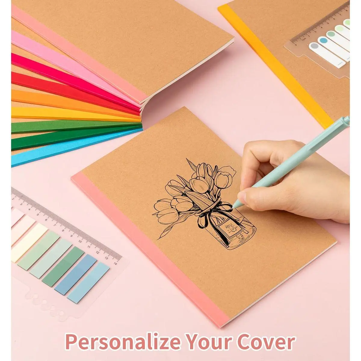 【Personalized Design】Express yourself with the blank kraft paper cover, perfect for DIY decorations. Write, draw, or add stickers to make each notebook in this notebook pack uniquely yours, reflecting your style and creativity.