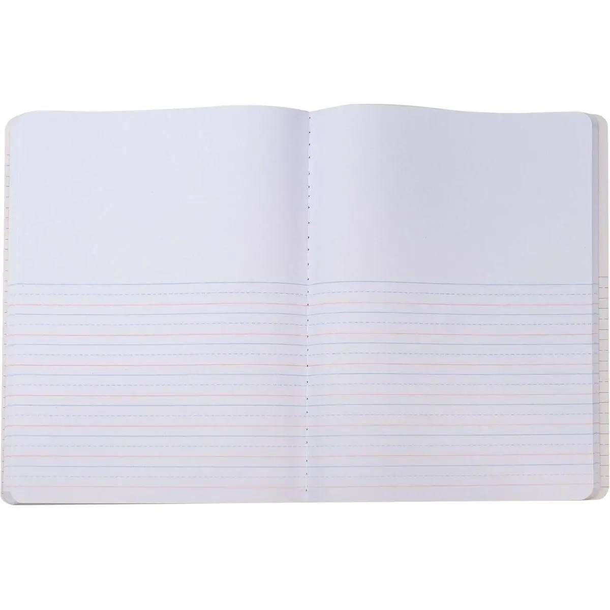 Students can draw pictures and create stories using their primary comp book. Pages feature primary ruling for story writing and a blank space for illustrations. The wide-ruled bottom portion of the page contains a red baseline and dotted lines to aid in letter positioning while the top portion of the page is unruled and can be used to draw pictures to bring the story to life!