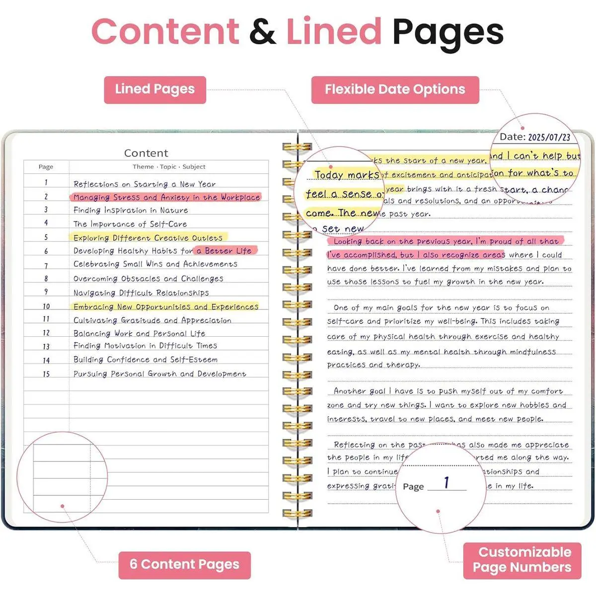 Sturdy Construction: Our Lined Spiral Journal Notebook is built to last with a sturdy metal twin-wire binding and a tough hardcover. The water-resistant cover shields your notes from damage, while the double-wire design allows for easy folding and flat laying.