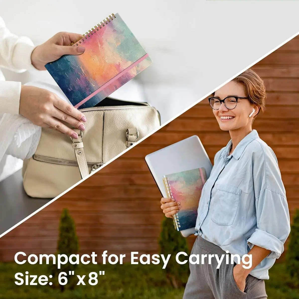 Medium-Sized Portability: Measuring 6 inches x 8 inches, our medium notebook strikes the perfect balance between portability and functionality. Its sturdy construction and aesthetic design make it an ideal companion for all your writing endeavors.