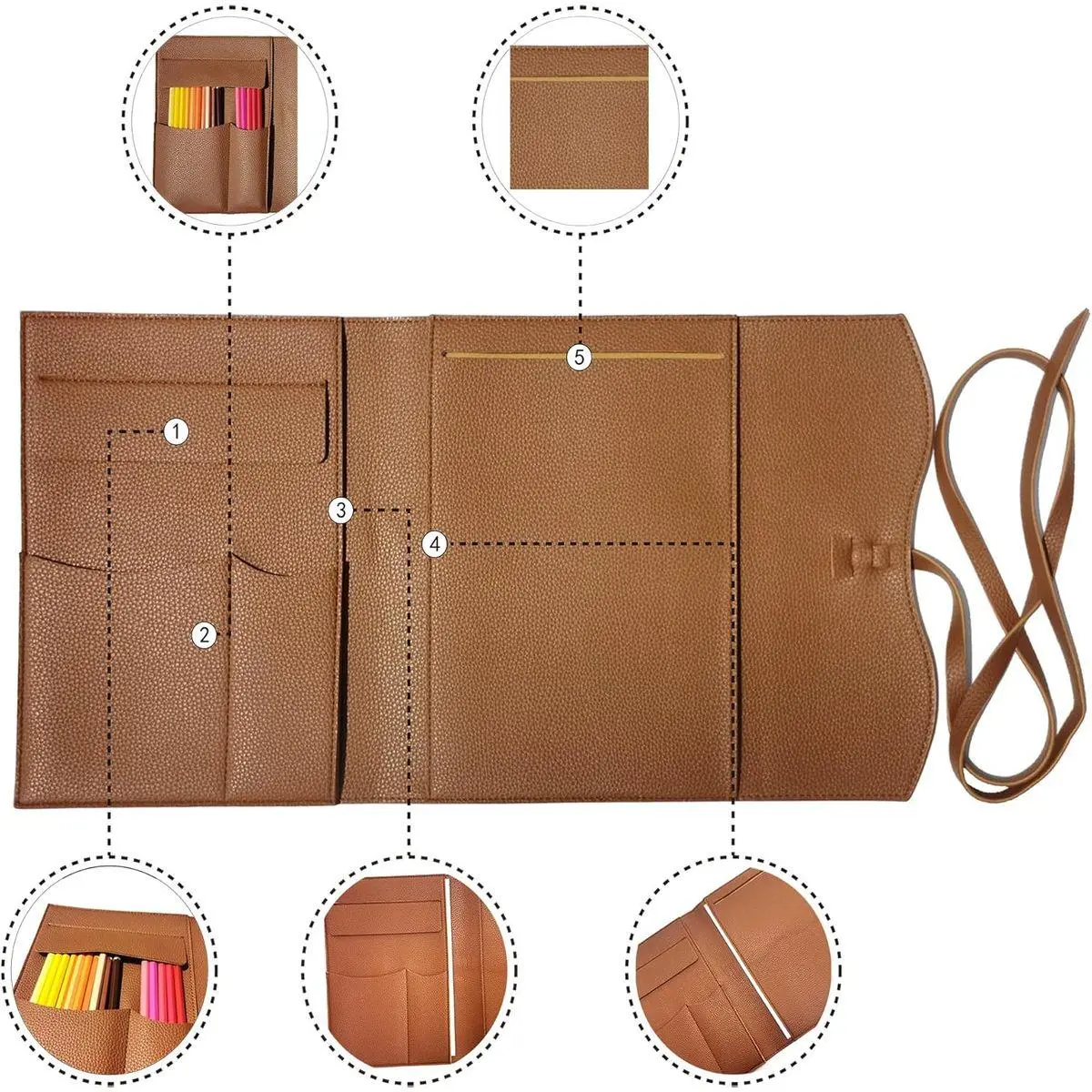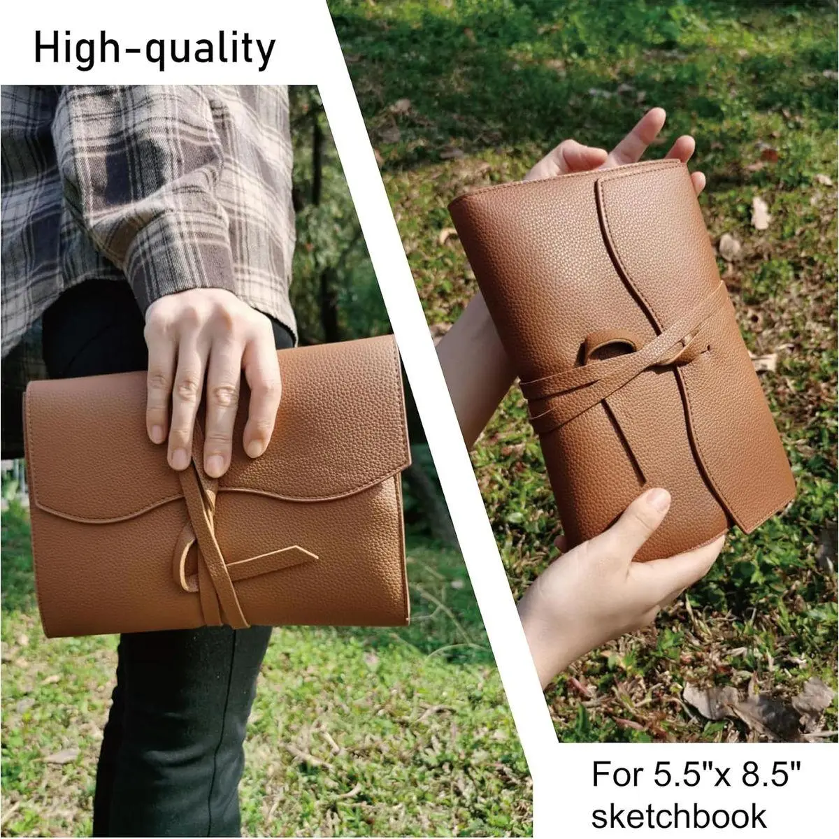 Leather Sketchbook Cover : The leather sketchbook holder is made of high-quality PU Leather, which is lightweight, beautiful, and functional, plenty storage holds a variety of art supplies, tools, and sketchbooks for everything you need for an afternoon sketching. The artist sketch pad cover holder is easy to carry. The sketchbook is not included.